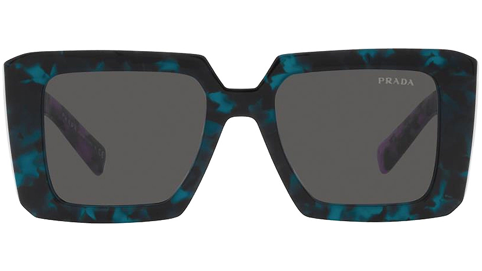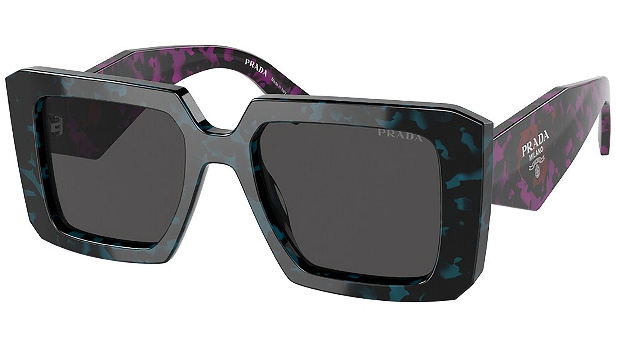 Prada sunglasses model PR 23YS teal tortoise frame variant, color code 06Z5S0 with dark grey lens. Prada represents the best of Italian culture and tradition. It is one of the most innovative, prestigious and widely recognized brands in the fashion and luxury goods industries, with a keen attention to details and new trends.