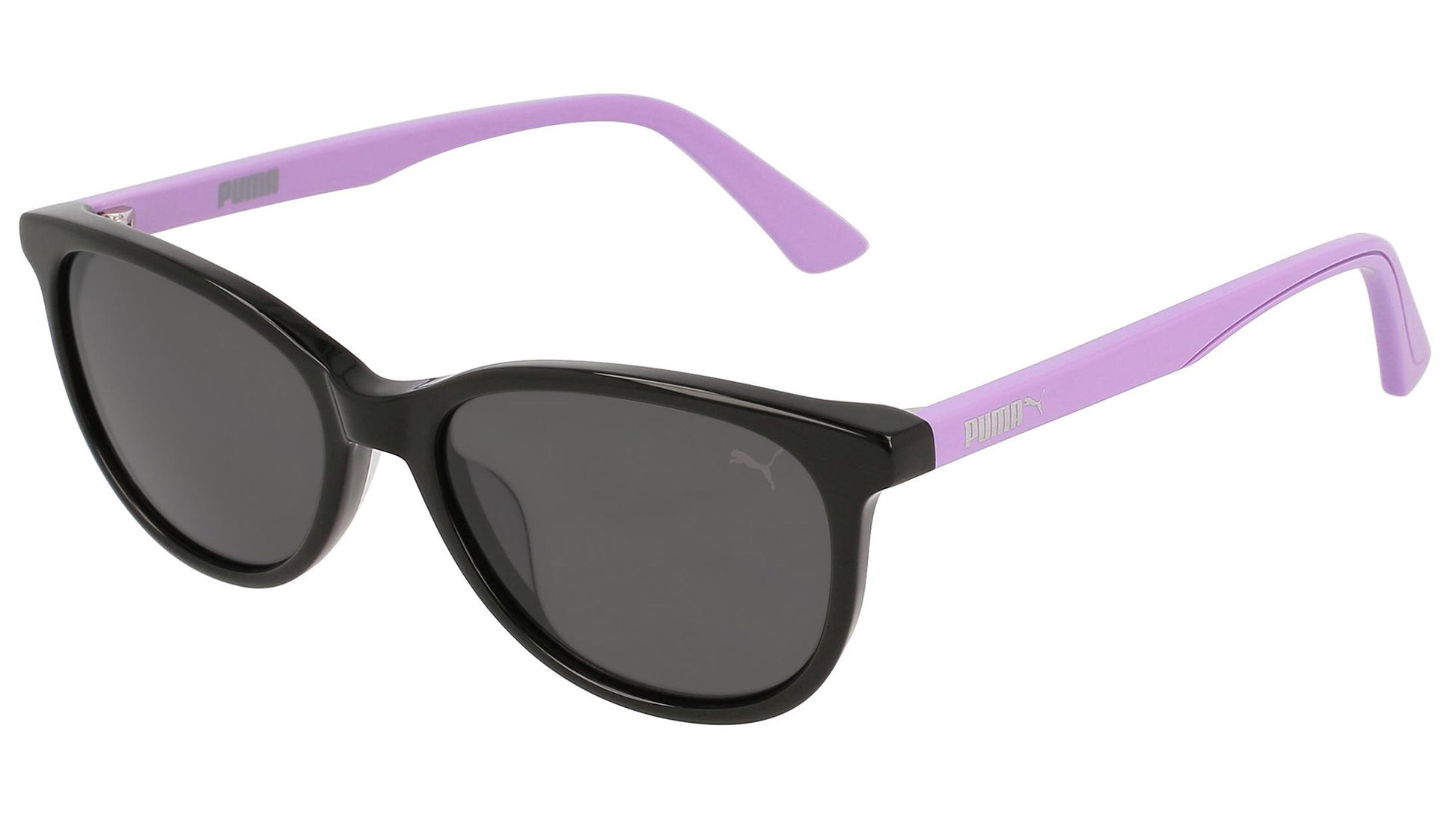 Puma for Kids model PJ0022S 007 shiny black sunglasses, with grey lenses. These kids are on the move. They roam the streets in search for recognition, emotions and daily kicks: celebrating with friends at the Luna Park, a thrilling jump, a trick on a skateboard, or simply seeing something new.
