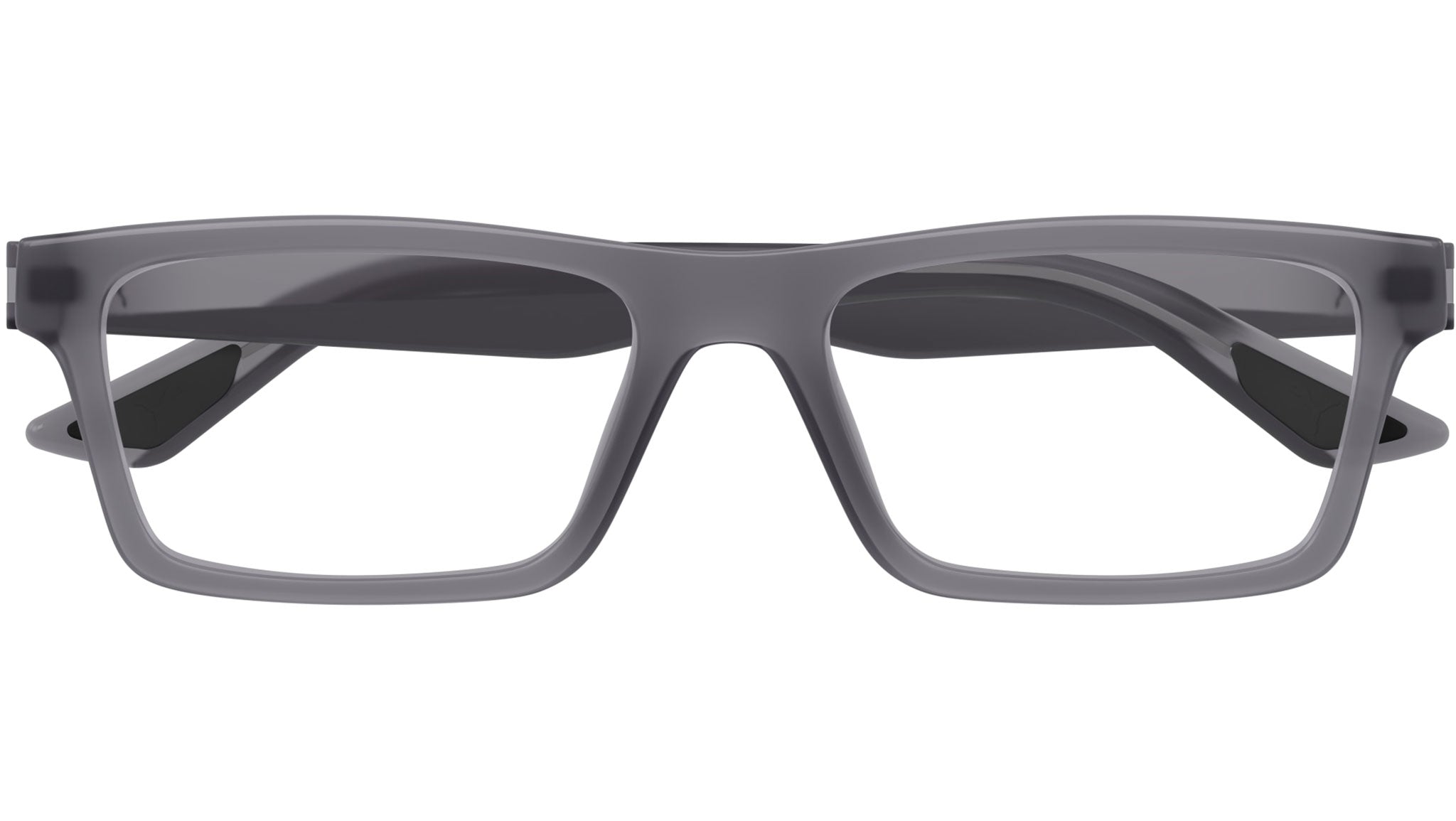 Puma PU0487O 005 glasses for men, featuring matte transparent grey rectangular injection frame and demo lenses. Brand line: Sport. Style code: PU0487O. Color code: 005. Authorized Puma Eyewear online reseller. Your glasses will include the original case and accessories and are covered by a 12-month global warranty.