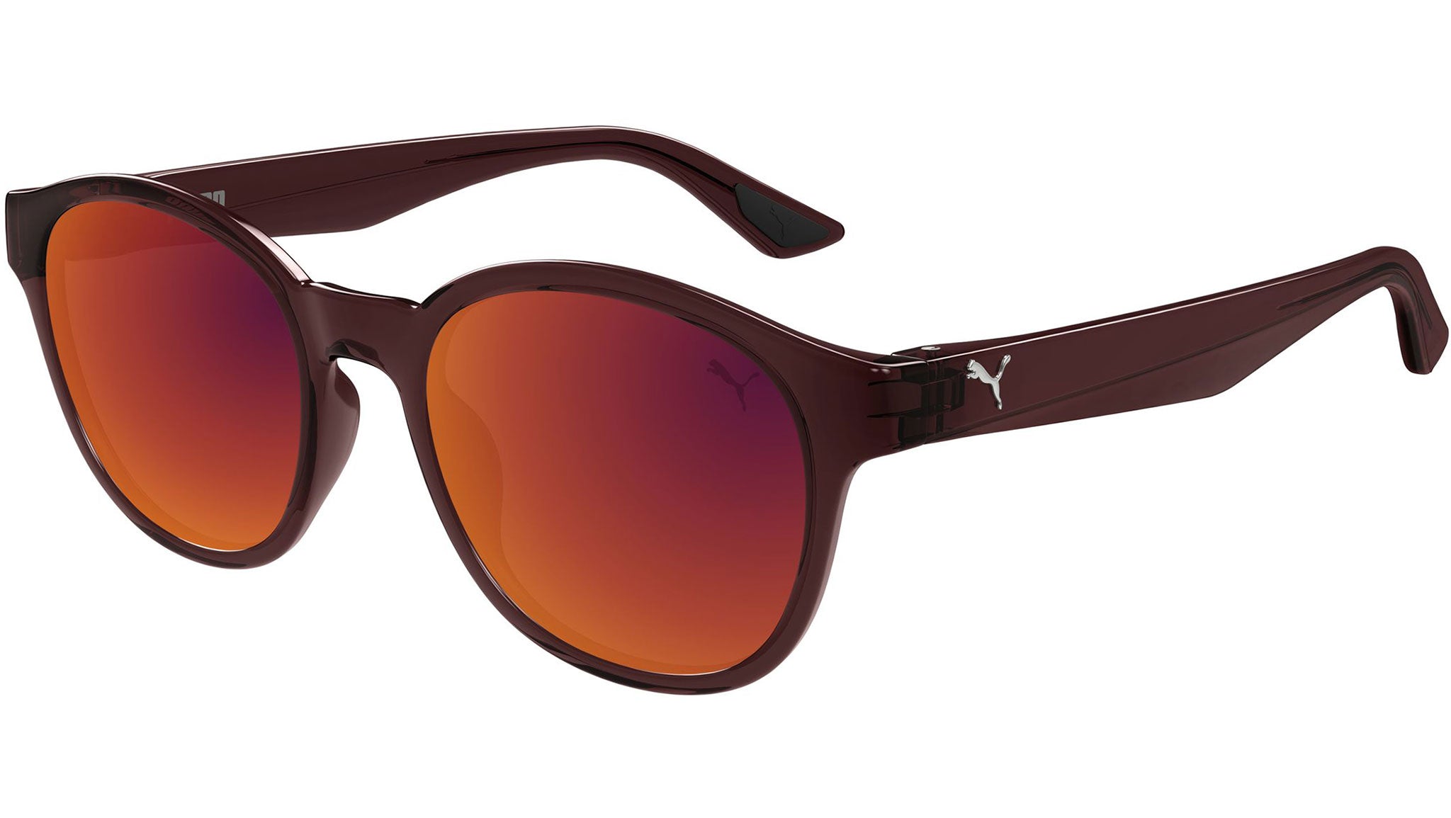Puma PU0522S 003 sunglasses for men, featuring shiny transparent brown panthos injection frame and solid green base + ml infrared polycarbonate lenses. Brand line: Sport. Style code: PU0522S. Color code: 003. Authorized Puma Eyewear online reseller. Your glasses will include the original case and accessories and are covered by a 12-month global warranty.