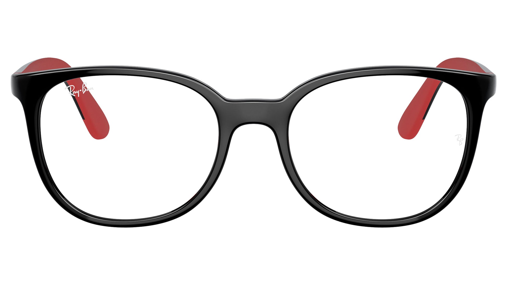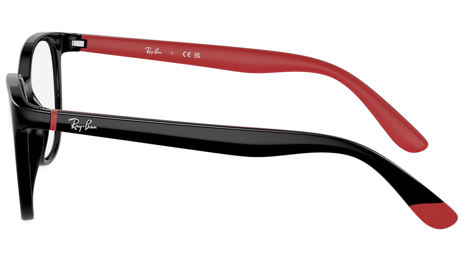 Ray-Ban Kids RY1631 black on red injection eyeglasses, color code 3928. Full Rim unisex panthos frame shape with high bridge fit and demo lens. Authorised Ray-Ban Reseller. Includes genuine case.