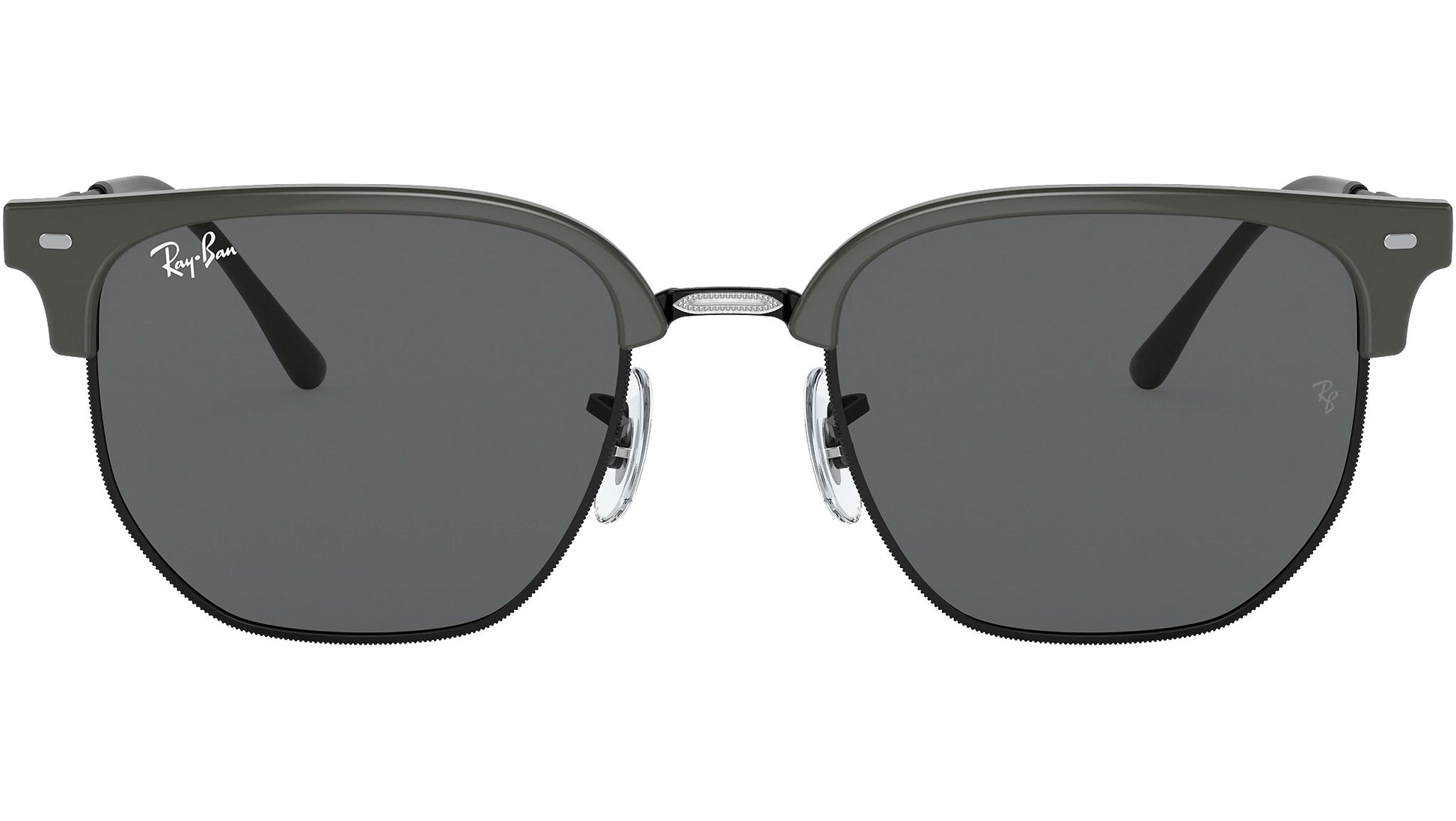 New Clubmaster RB4416 6653B1 grey on black, propionate frame, metal temple, featuring dark grey glass lens.