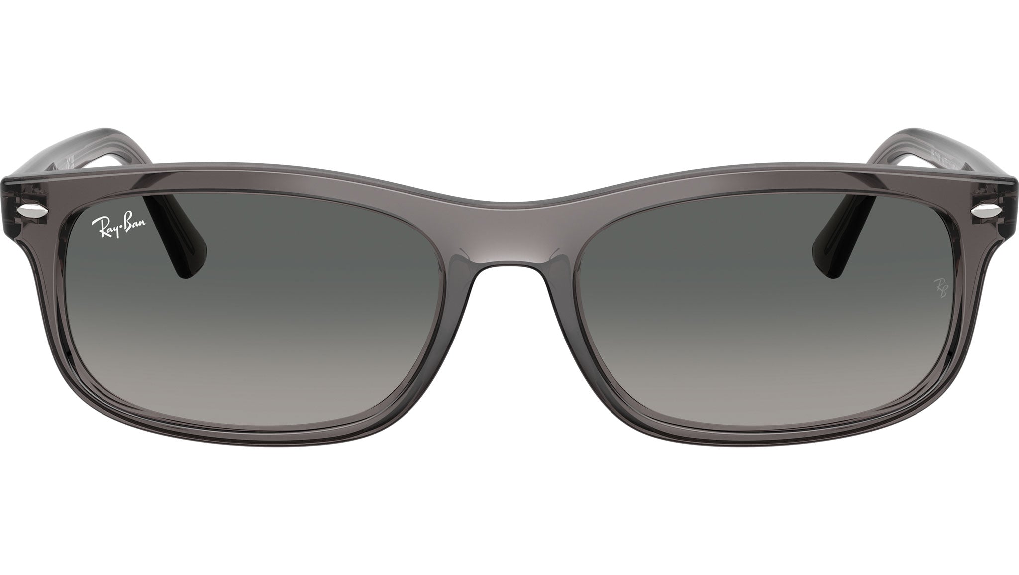Ray-Ban RB2224 667571 sunglasses for men and woman, featuring opal light grey rectangular propionate frame and grey gradient glass lenses. Brand line: Essentials. Style code: 0RB2224. Color code: 667571. Authorized Ray-Ban online reseller. Your glasses will include the original case and accessories and are covered by a 12-month global warranty.