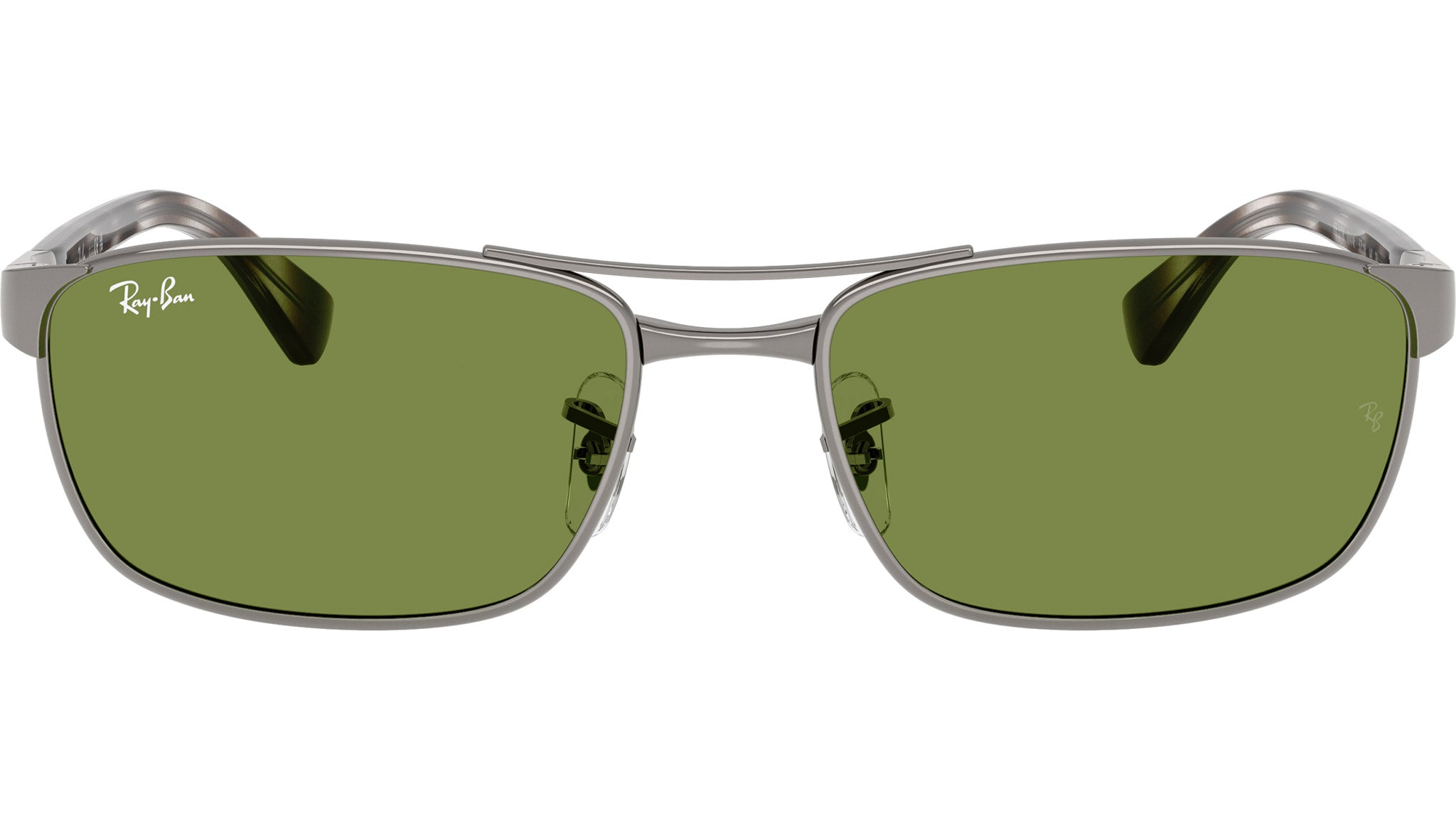 Ray-Ban RB3778 004/4E sunglasses for men and woman, featuring gunmetal geometric metal frame and green glass lenses. Brand line: Essentials. Style code: 0RB3778. Color code: 004/4E. Authorized Ray-Ban online reseller. Your glasses will include the original case and accessories and are covered by a 12-month global warranty.