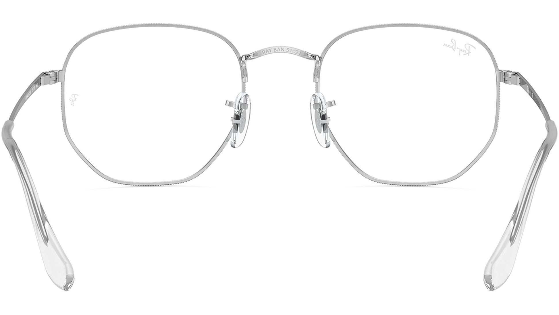 Ray-Ban RB6448 Optics RB6448 2501 glasses for men and woman, featuring silver geometric metal frame and demo lens. Adjustable nosepads. Brand line: Evolution. Style code: 0RX6448. Color code: 2501. Authorized Ray-Ban online reseller. Your glasses will include the original case and accessories and are covered by a 12-month global warranty.