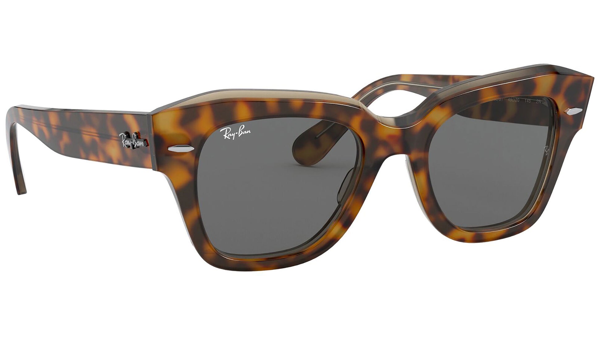 The Wayfarer family continues with the Statestreet. Its elegant, squared shape, crafted from acetate and available in a selection of colours, creates a contemporary style. Dare to wear them in a range of colours, including solid and bilayer options, combined with classic, gradient or polar lenses. The on-trend acetate temple tips and Ray-Ban logo complete the picture.