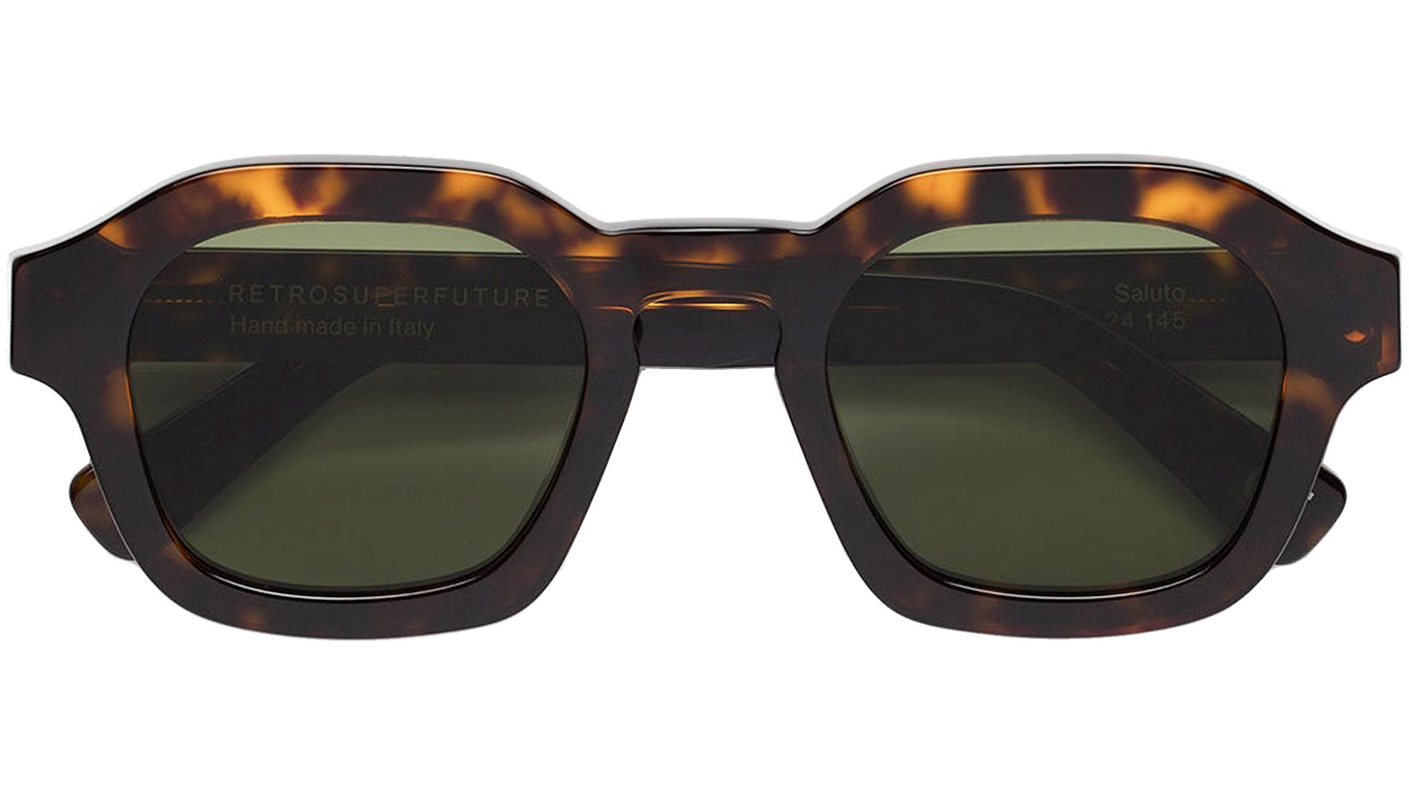 Saluto is a sleek silhouette that underlines the understanding of timeless style: both familiar and essential, yet keeping it fresh and contemporary, this model is conceived as a true instant classic. A more sophisticated version of well-known rounded, fitted shapes, Saluto features a hexagonal design with a raised brow-line for a slightly oversized fit. A bold yet unobtrusive icon for the 21st century, Saluto comes in an elegant 3627 Havana finish with bottle green lenses.