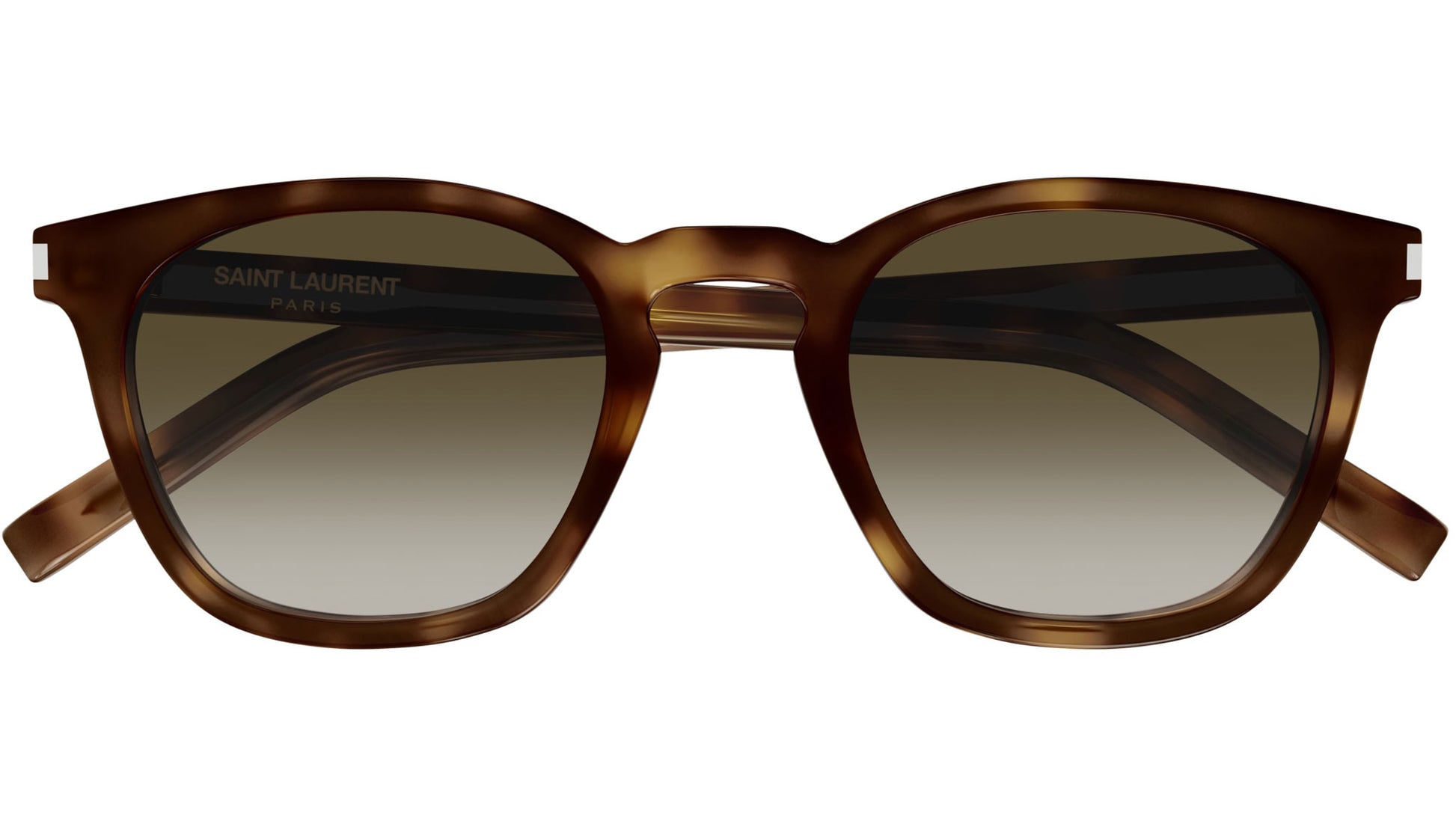 Saint Laurent SL 28 048 sunglasses for men and woman, featuring shiny medium havana rectangular acetate frame and gradient brown bio nylon lenses. Brand line: Classic. Style code: SL 28. Color code: 048. Made in Italy. Authorized Saint Laurent online reseller. Your glasses will include the original case and accessories and are covered by a 12-month global warranty.