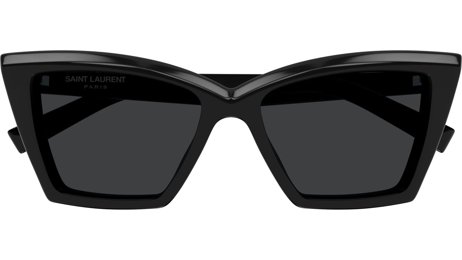 Saint Laurent SL 657 001 sunglasses for women, featuring shiny solid black cat eye recycled acetate frame and solid black bio nylon lenses. Brand line: New Wave. Style code: SL 657. Color code: 001. Made in Italy. Authorized Saint Laurent online reseller. Your glasses will include the original case and accessories and are covered by a 12-month global warranty.