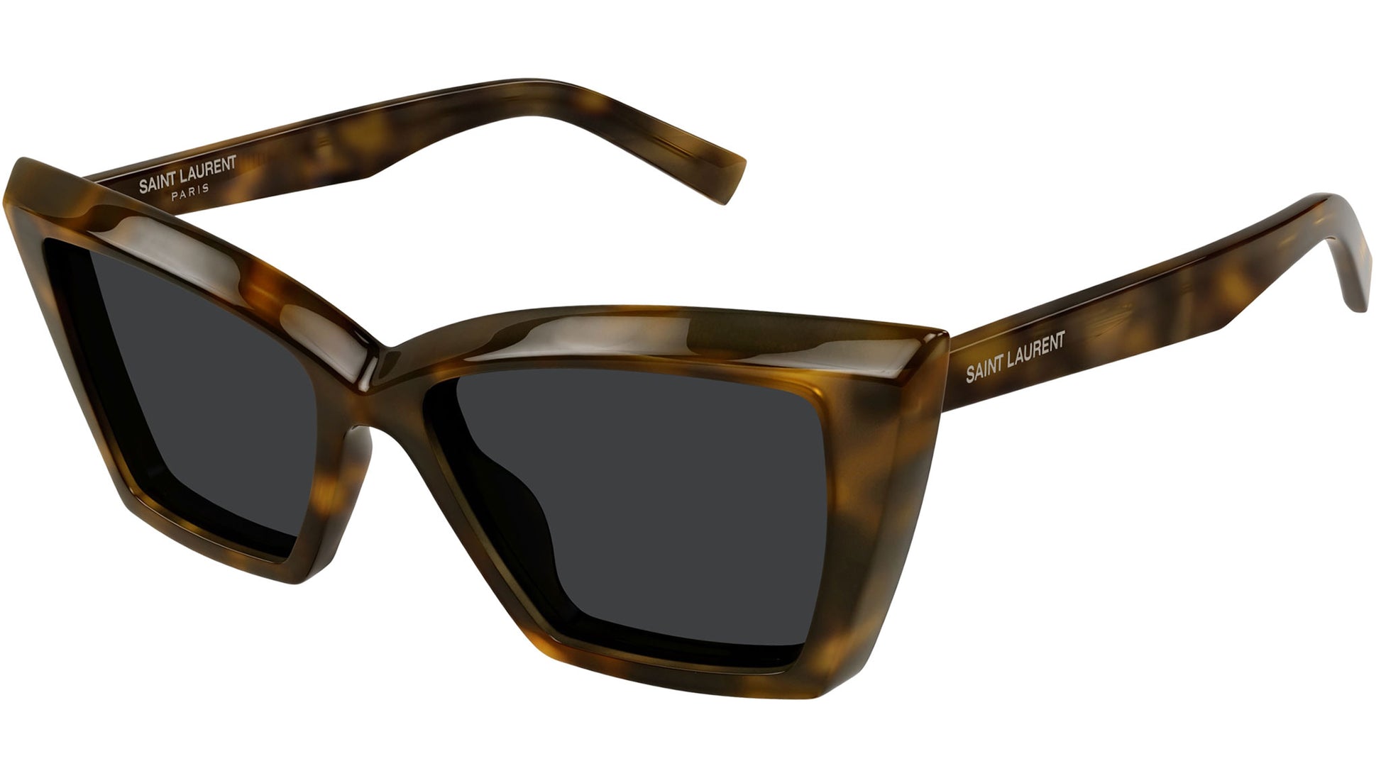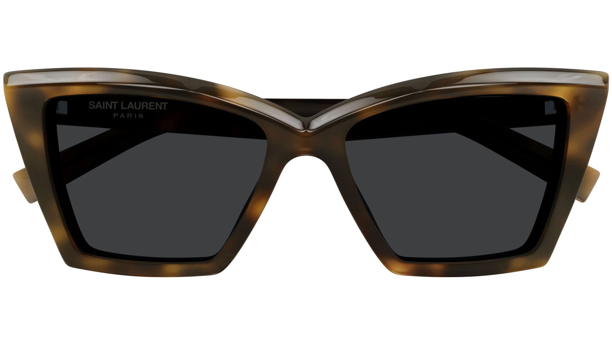 Saint Laurent SL 657 002 sunglasses for women, featuring shiny medium havana cat eye recycled acetate frame and solid black bio nylon lenses. Brand line: New Wave. Style code: SL 657. Color code: 002. Made in Italy. Authorized Saint Laurent online reseller. Your glasses will include the original case and accessories and are covered by a 12-month global warranty.