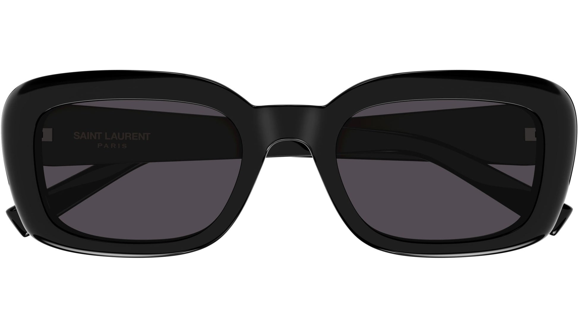 Saint Laurent sunglasses model SL M130 from Monogram eyewear line, color code 001 shiny solid black recycled acetate, rectangle frame shape with solid black lens.