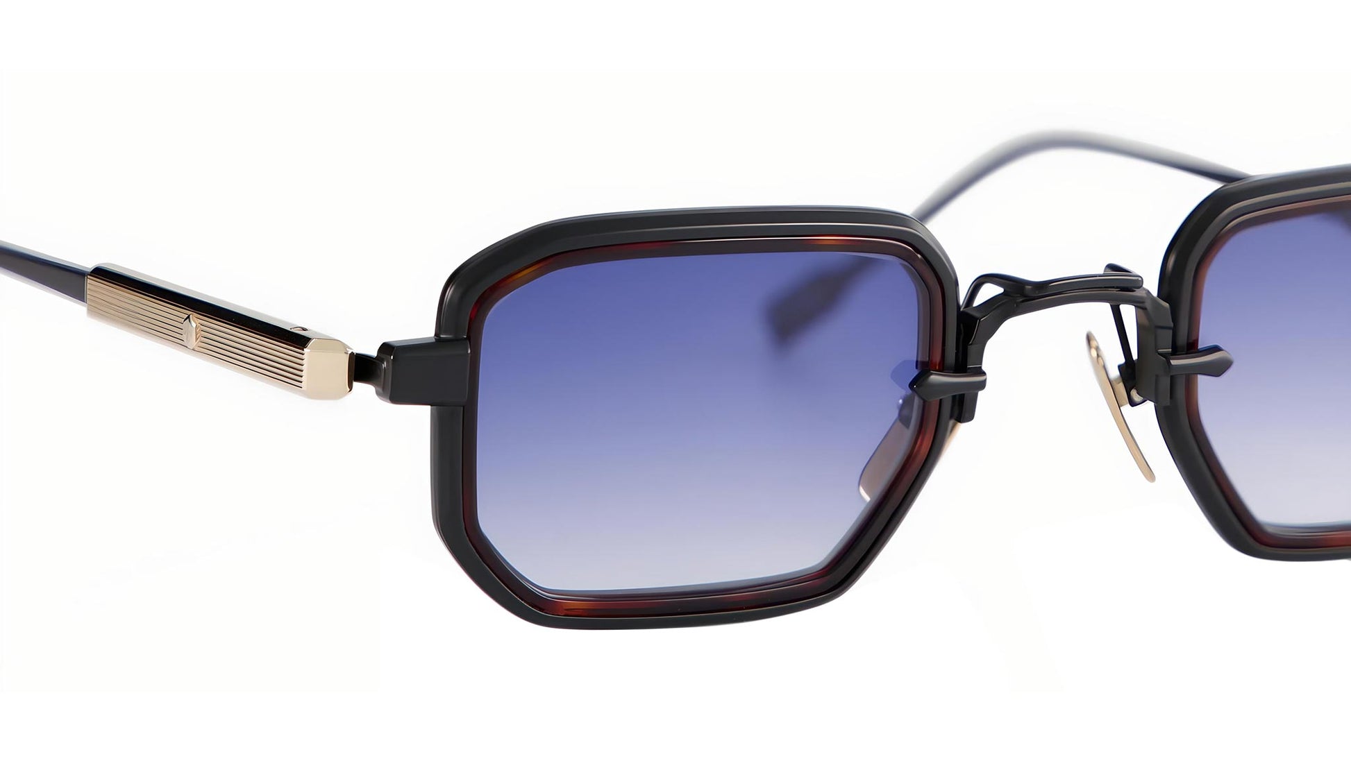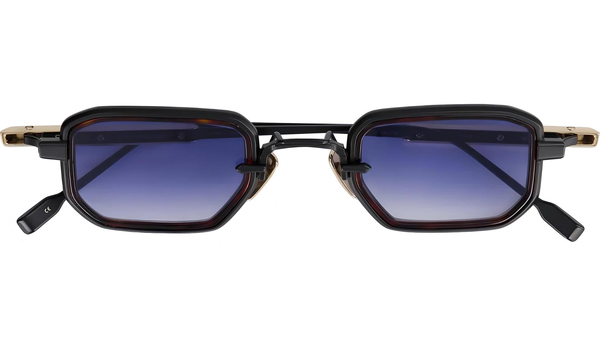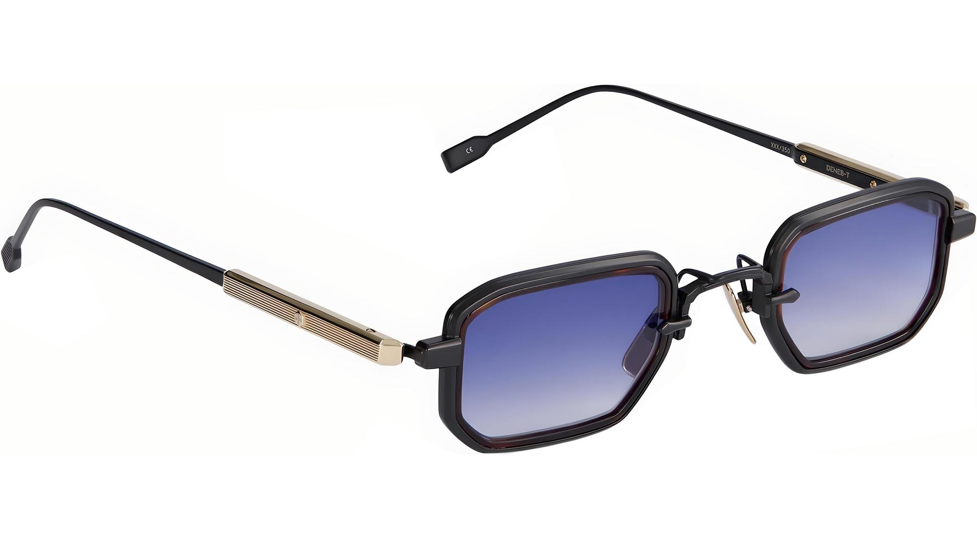 Sato Eyewear sunglasses model Deneb-T B/LG-1 featuring black and gold Titanium with tortoise takiron rim insert and gradient dark blue lenses. Deneb-T Collection, a captivating enigma, where every pair of glasses holds a narrative of allure and seduction. These designs peel away the layers of mystery, igniting an insatiable thirst for desire and evoking an irresistible intrigue with their distinct allure.