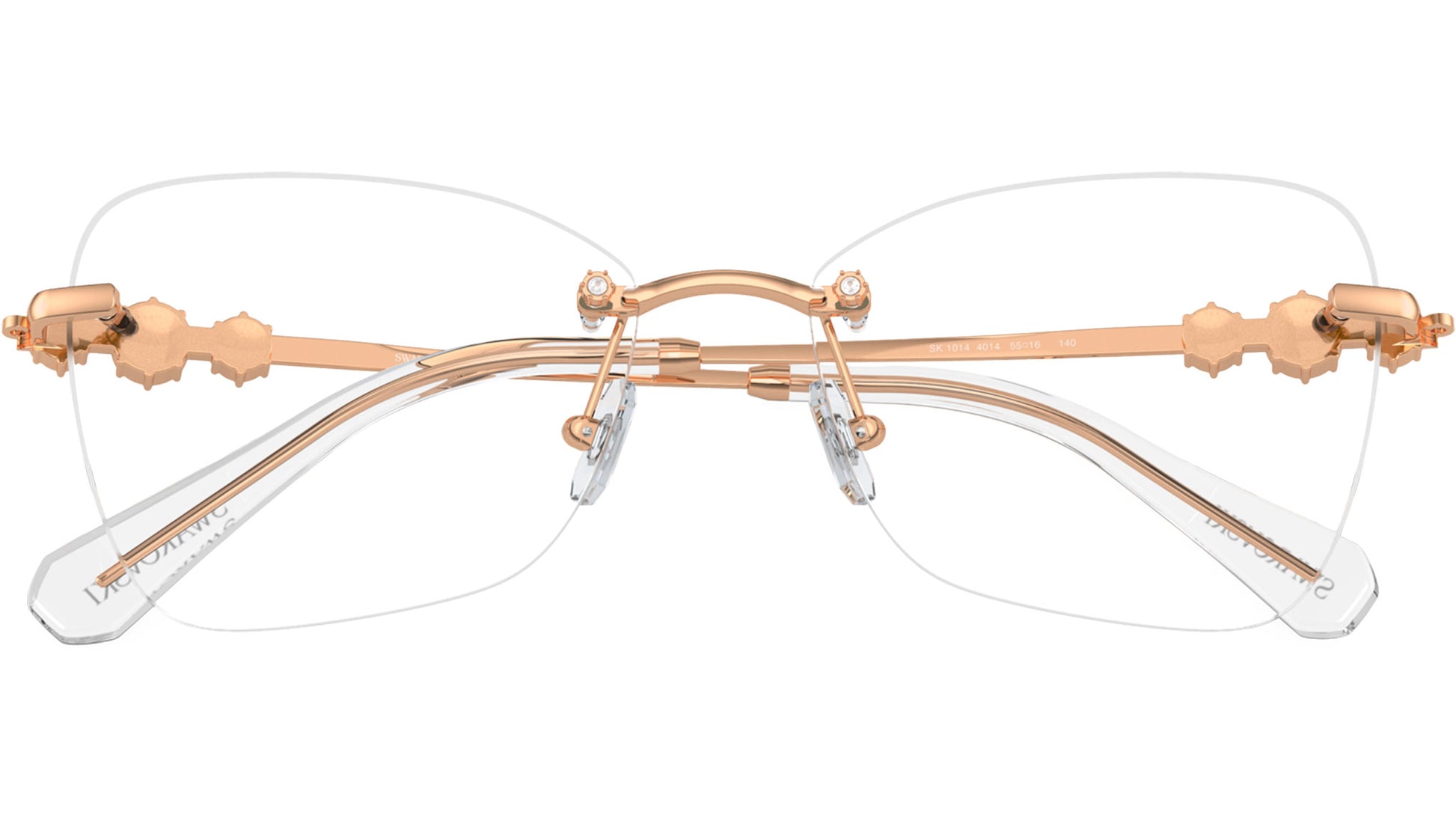 Swarovski optical frame for women model 1014 featuring rose gold rimless metal frame and base 4 demo lens. Adjustable nosepads. Frame line: Science of Elegance. Brand code: 0SK1014. Color code: 4014. Authorised Swarovski Eyewear Online Reseller. Your glasses will come including the original case and accessories and will be covered by 12 month global warranty.