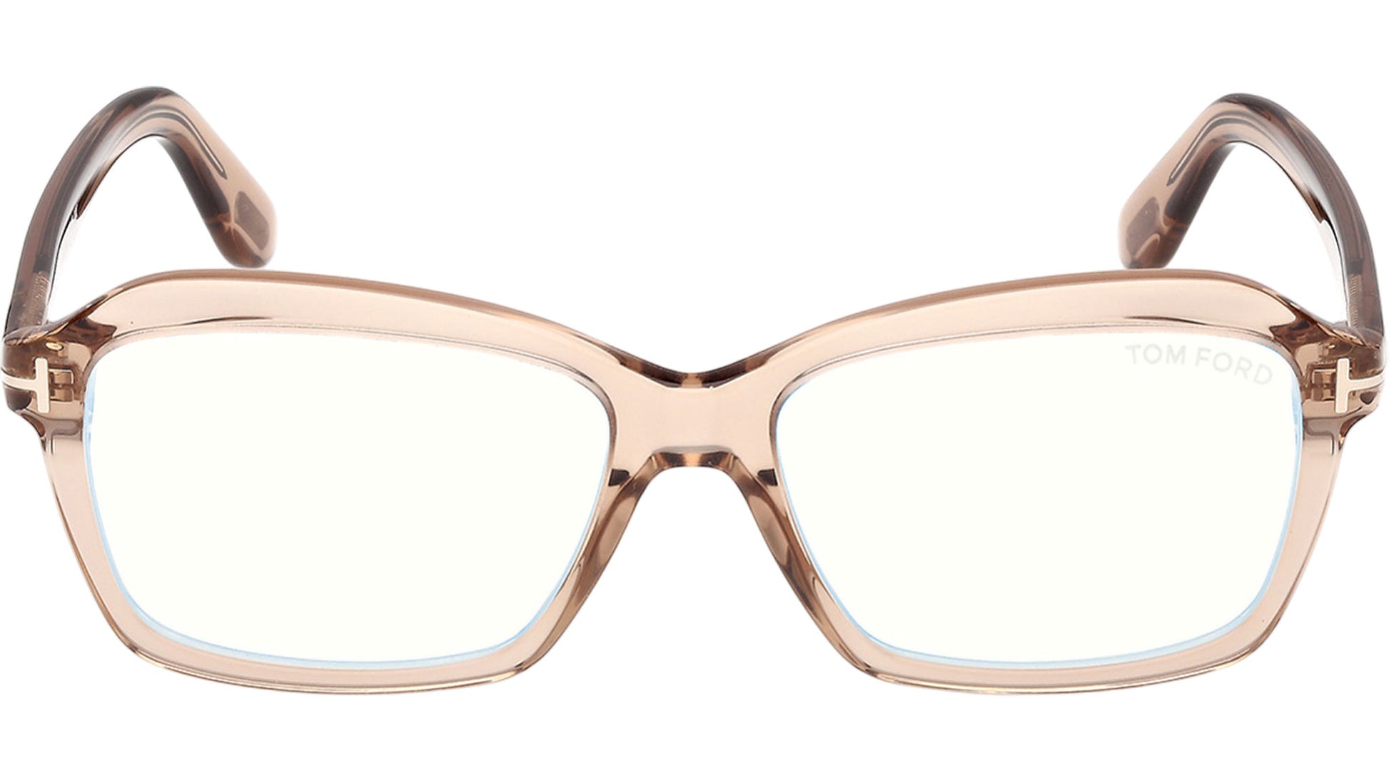 Tom Ford glasses for women model FT6129-B featuring shiny light brown full-rim acetate frame and transparent demo lenses. Brand code: 6129-B. Color code: 045. Authorised Tom Ford Eyewear Online Reseller. Your glasses will include the original case and accessories and will be covered by a 12-month global warranty.