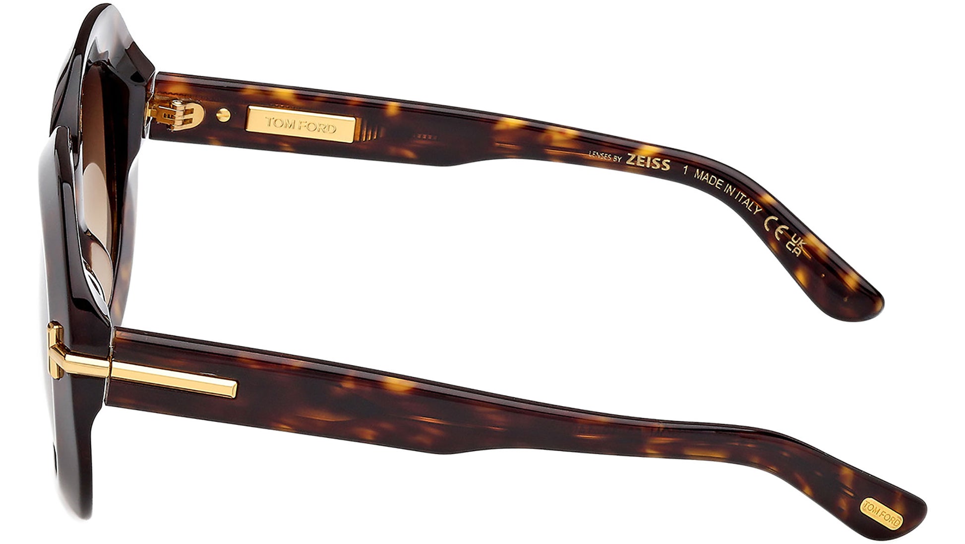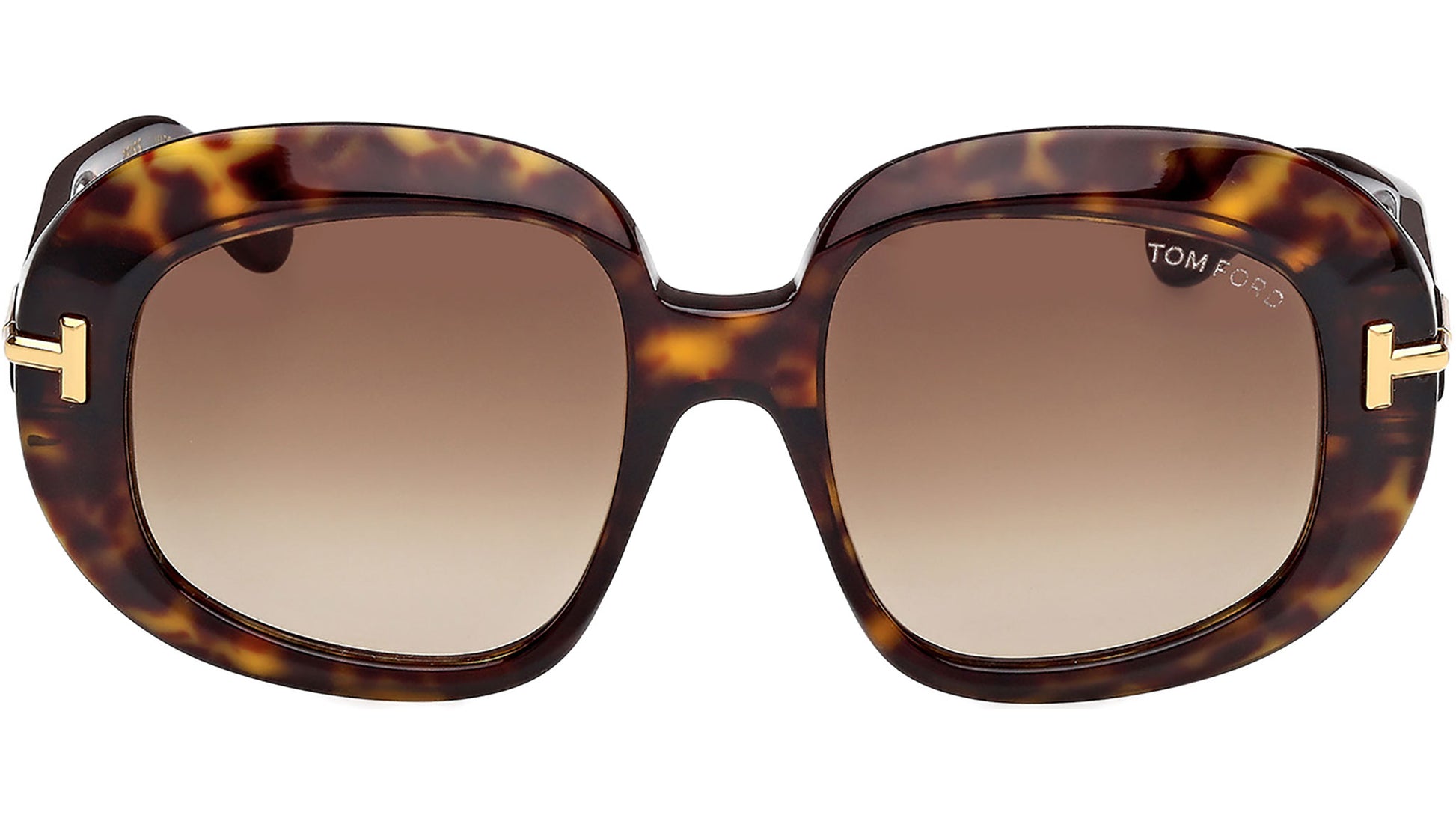 Tom Ford Icon sunglasses for women model FT1237 featuring dark havana full-rim acetate frame and gradient brown lenses. Brand code: 1237. Color code: 52F. Authorised Tom Ford Online Reseller. Your glasses will include the original case and accessories and will be covered by a 12-month global warranty.