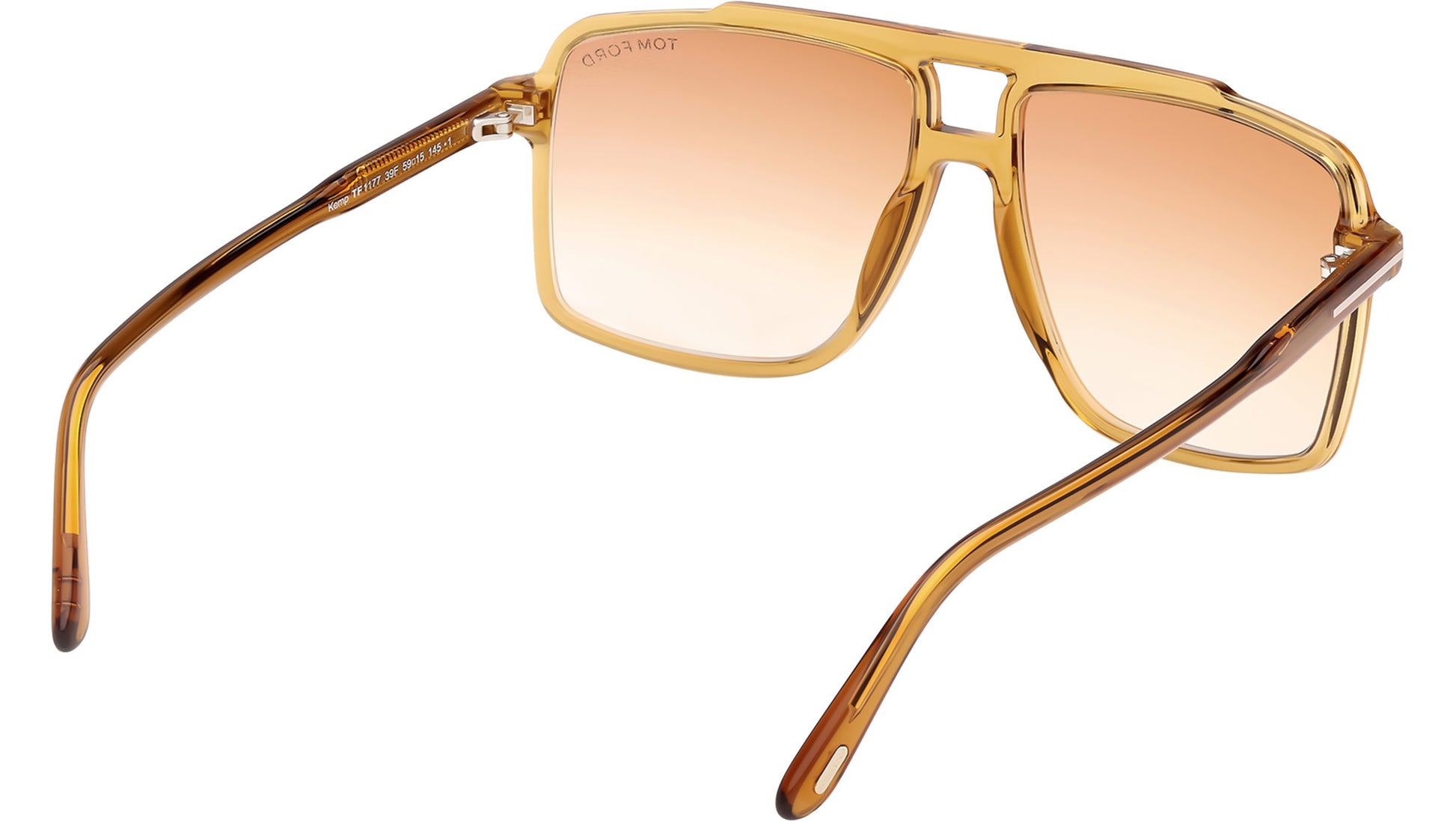 Tom Ford Kemp sunglasses for men model FT1177 featuring shiny dark yellow full-rim acetate frame with gradient brown lenses. Brand code: 1177. Color code: 39F. Authorised Tom Ford Online Reseller. Your glasses will include the original case and accessories and will be covered by a 12-month global warranty.