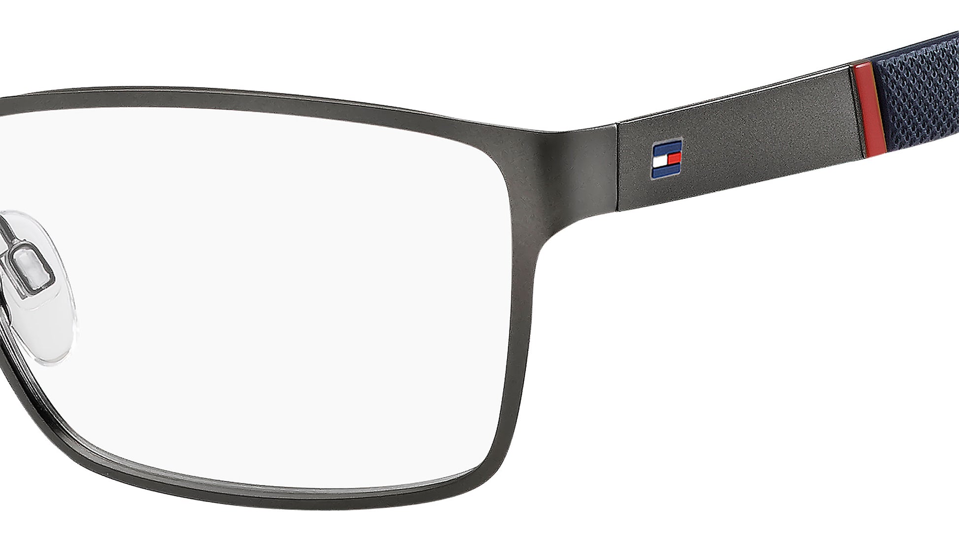 Tommy Hilfiger TH 1543 R80 glasses featuring matte dark ruthenium rectangular metal frame and demo lenses. The easy-to-wear design features metal temples and rubber end tips finished with the famous Polo texture for an innovative touch experience. A must-have for a sporty and refined look. Brand line: Sporty. Style code: 101045. Color code: R80. Authorized Tommy Hilfiger online reseller. Your glasses will include the original case and accessories and are covered by a 12-month global warranty.