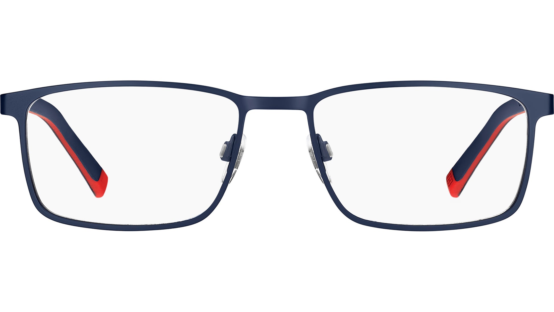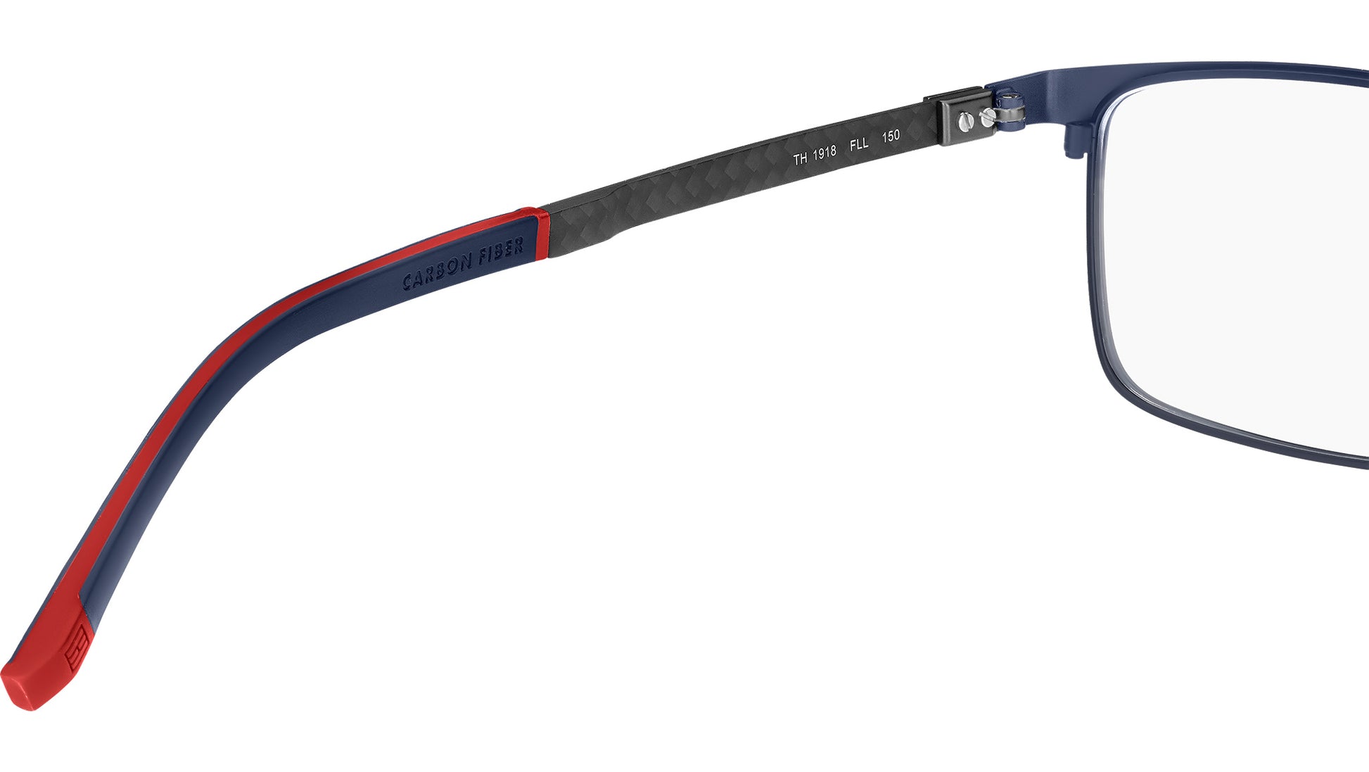 Tommy Hilfiger TH 1918 FLL glasses featuring matte blue rectangular metal frame and demo lenses. In carbon fibre, these Tommy Hilfiger eyeglasses represent truly evolved design and style. Easy to wear and versatile, characterised by the brand's original colourful details (like the unmistakable ribbon), these Tommy Hilfiger eyeglasses are lightweight and comfortable. They adapt to any outfit and are recognisable by the metal and rubber details, and the rectangular shape: truly one of a kind. Brand line: Sporty. Style code: 105769. Color code: FLL. Authorized Tommy Hilfiger online reseller. Your glasses will include the original case and accessories and are covered by a 12-month global warranty.