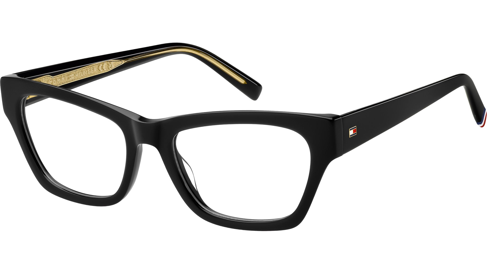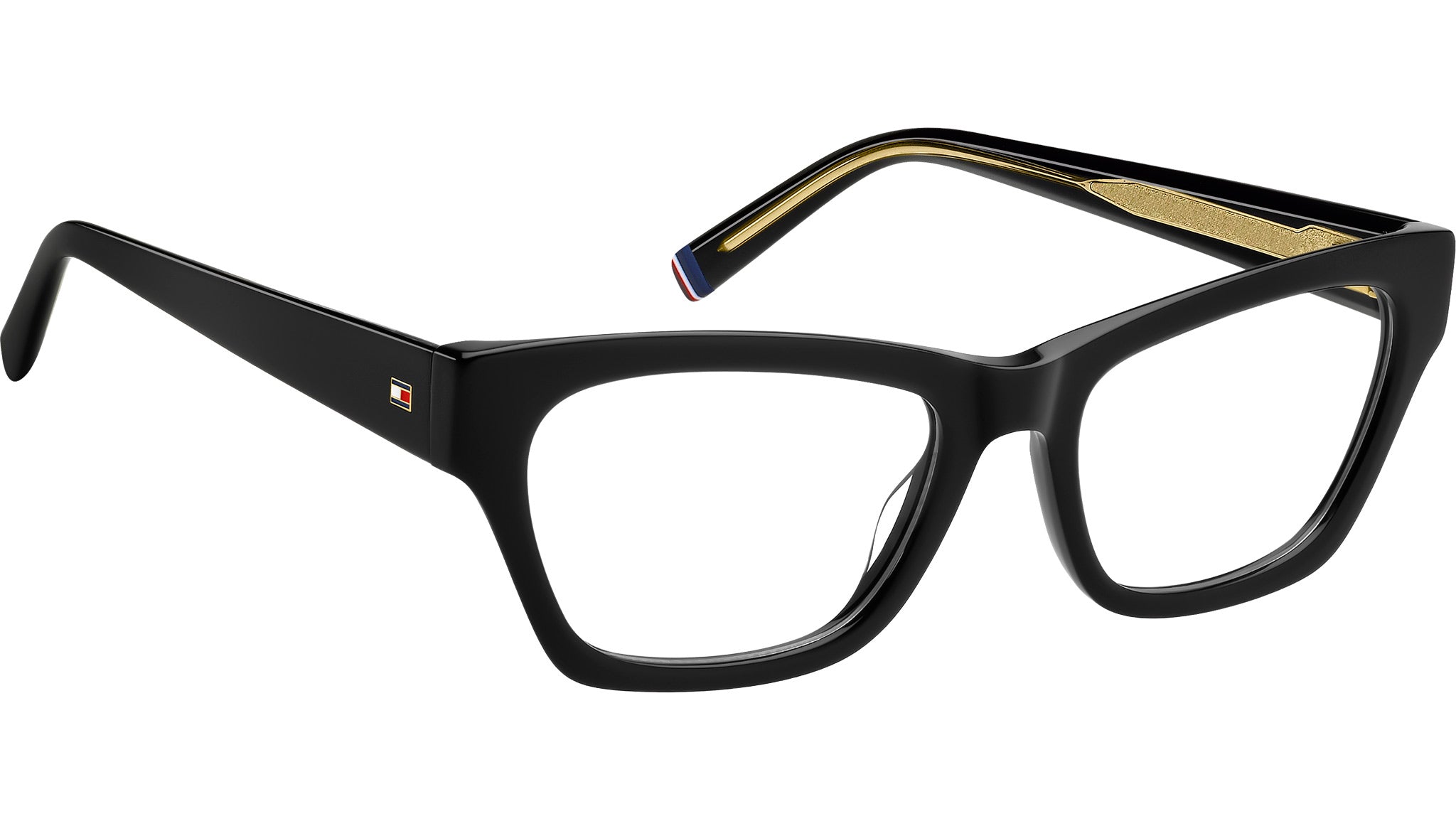 Tommy Hilfiger TH 2231 807 glasses featuring black rectangular acetate frame and demo lenses. Versatile and evergreen, these Tommy Hilfiger optical glasses for women are a sure bet which will complete everyday outfits. The acetate structure is even more comfortable thanks to the flexible hinges. The iconic flag and ribbon in blue, red and white are instantly recognisable, visible on the temples and on the left end tip. Choosing a colour from the many options available will be a pleasure. Brand line: Classy. Style code: 109361. Color code: 807. Authorized Tommy Hilfiger online reseller. Your glasses will include the original case and accessories and are covered by a 12-month global warranty.