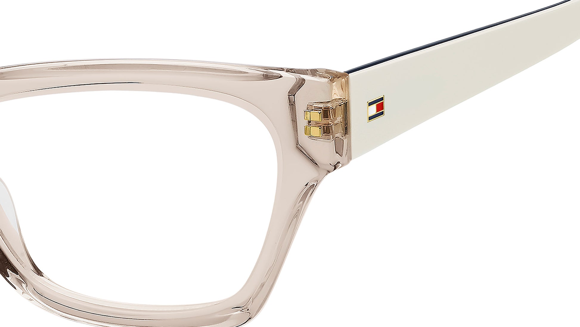 Tommy Hilfiger TH 2231 SZJ glasses featuring ivory rectangular acetate frame and demo lenses. Versatile and evergreen, these Tommy Hilfiger optical glasses for women are a sure bet which will complete everyday outfits. The acetate structure is even more comfortable thanks to the flexible hinges. The iconic flag and ribbon in blue, red and white are instantly recognisable, visible on the temples and on the left end tip. Choosing a colour from the many options available will be a pleasure. Brand line: Classy. Style code: 109361. Color code: SZJ. Authorized Tommy Hilfiger online reseller. Your glasses will include the original case and accessories and are covered by a 12-month global warranty.