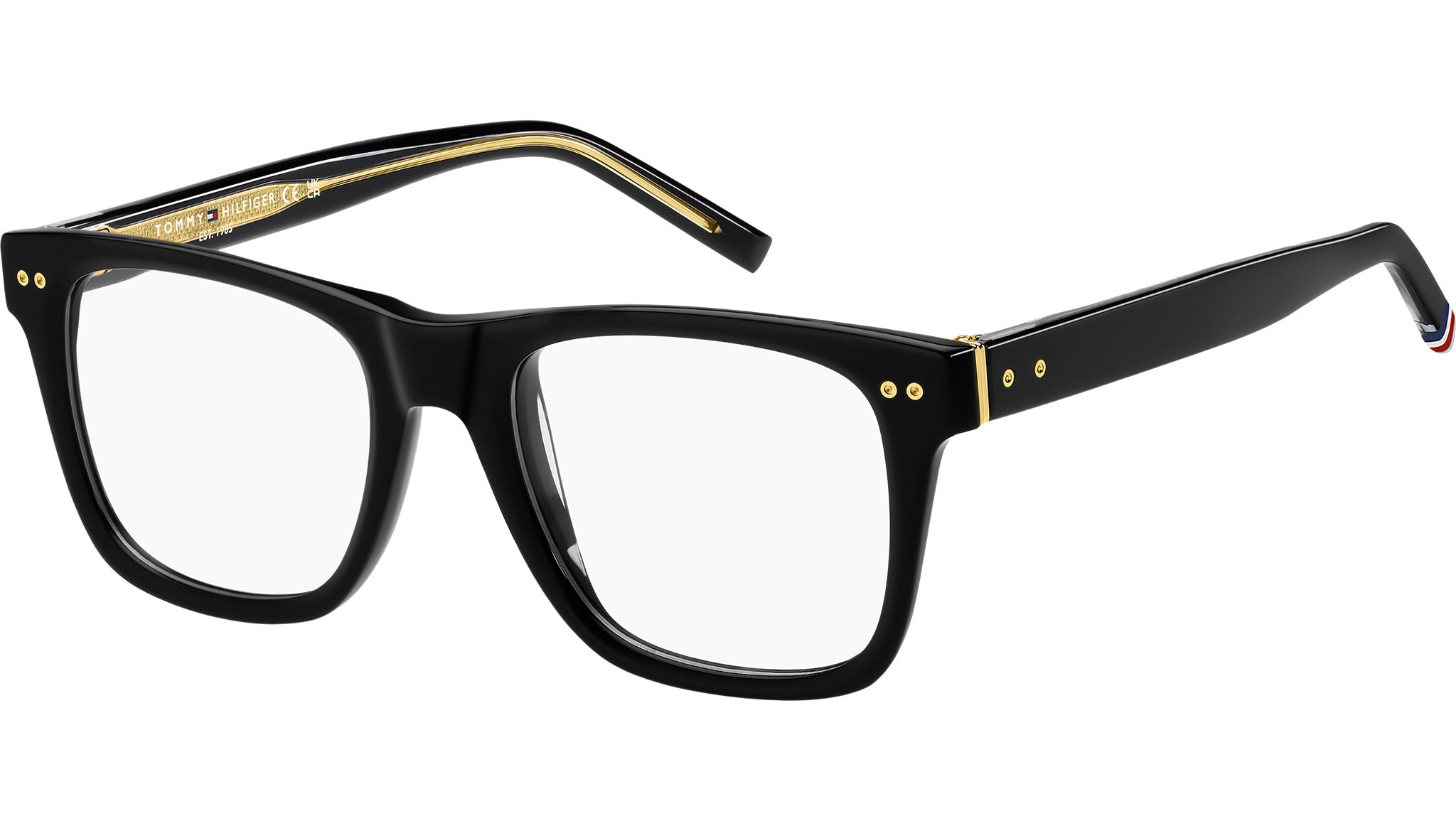Tommy Hilfiger TH 85 2M2 glasses featuring black gold squared eco acetate frame and demo lenses. Brand line: Modern Preppy. Style code: 109721. Color code: 2M2. Authorized Tommy Hilfiger online reseller. Your glasses will include the original case and accessories and are covered by a 12-month global warranty.
