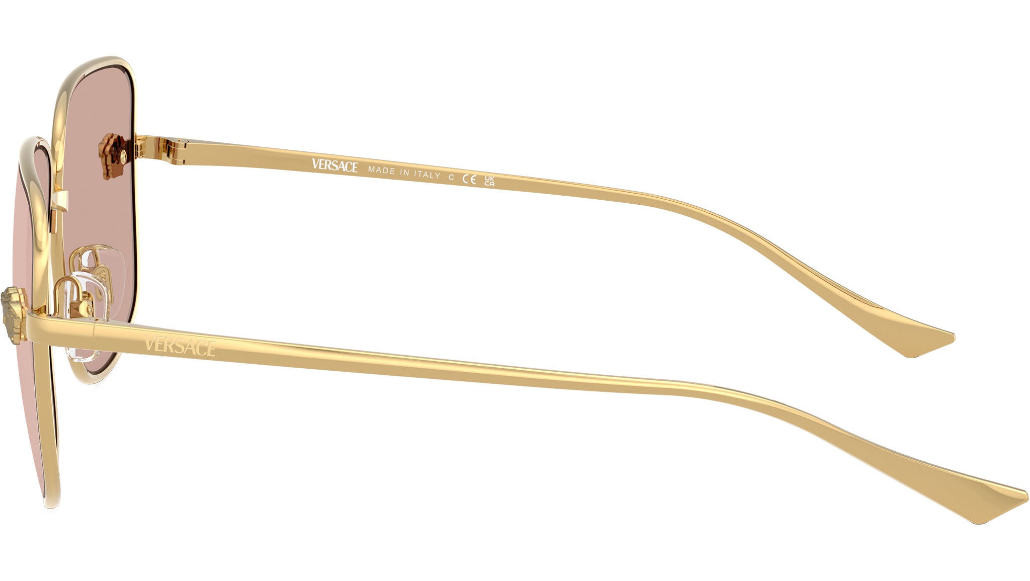 Versace sunglasses for women model VE2282 1002/5 featuring gold metal frame and light pink mirror silver base 4 bio poliammide lenses. Adjustable nosepads. Frame line: Fashion ID. Brand code: 0VE2282. Color code: 1002/5. Authorised Versace Eyewear Online Reseller. Your glasses will come including the original case and accessories and will be covered by 12 month global warranty.