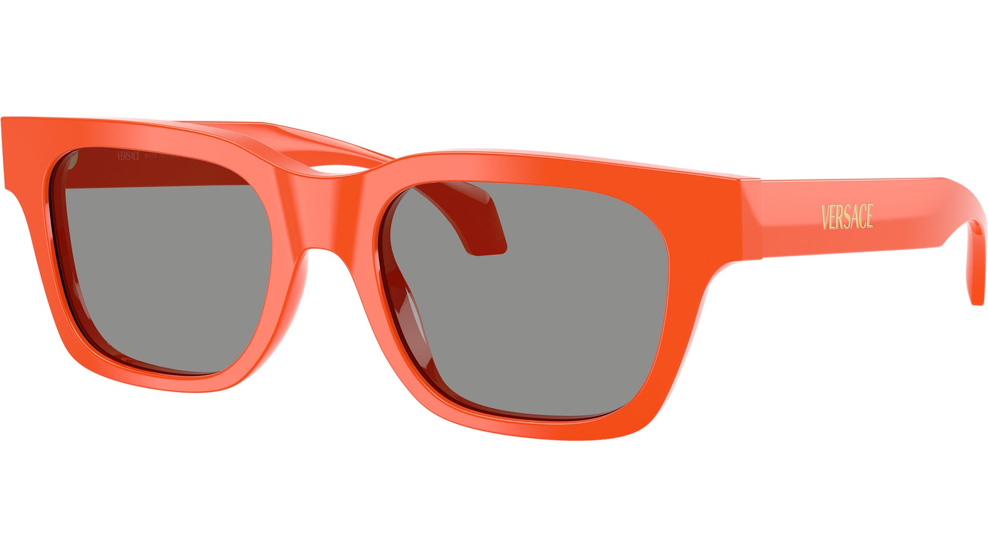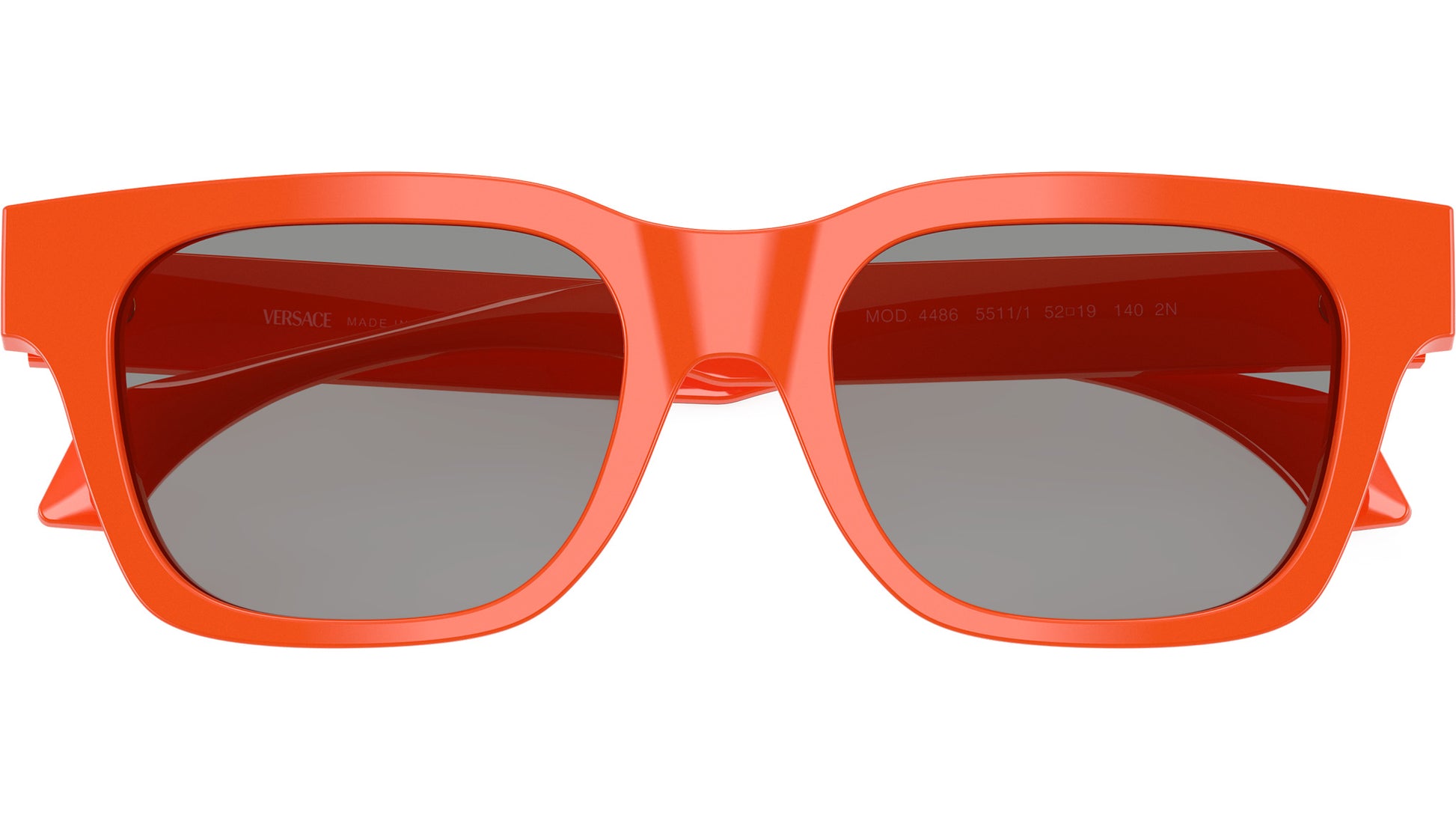 Versace sunglasses for men model VE4486 5511/1 featuring orange acetate frame and grey base 4 bio poliammide lenses. High bridge fit. Frame line: Daily Heritage. Brand code: 0VE4486. Color code: 5511/1. Authorised Versace Eyewear Online Reseller. Your glasses will come including the original case and accessories and will be covered by 12 month global warranty.