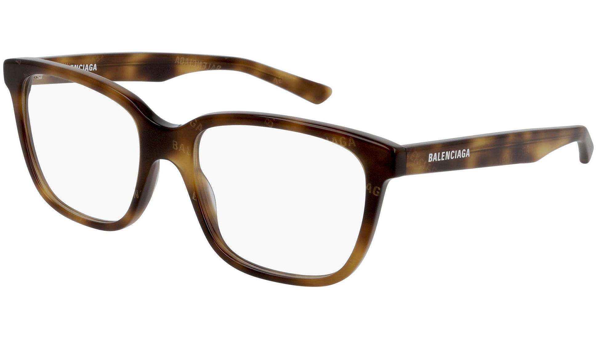 Balenciaga Everyday optical collection model BB0078O featuring shiny balenciaga havana frame and havana temple.