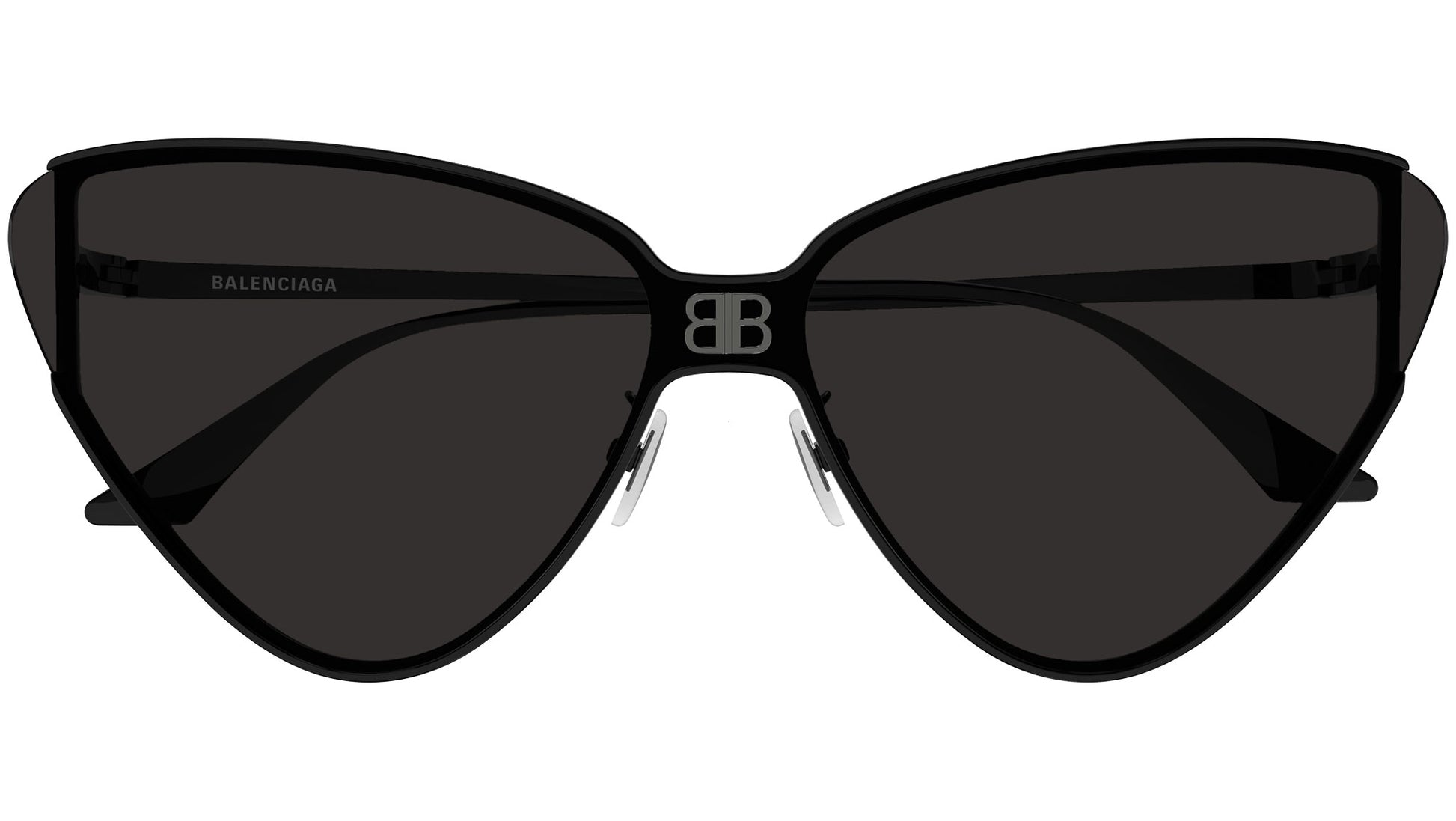 Balenciaga BB0191S 001 sunglasses with shiny black frame and solid grey mask lens.