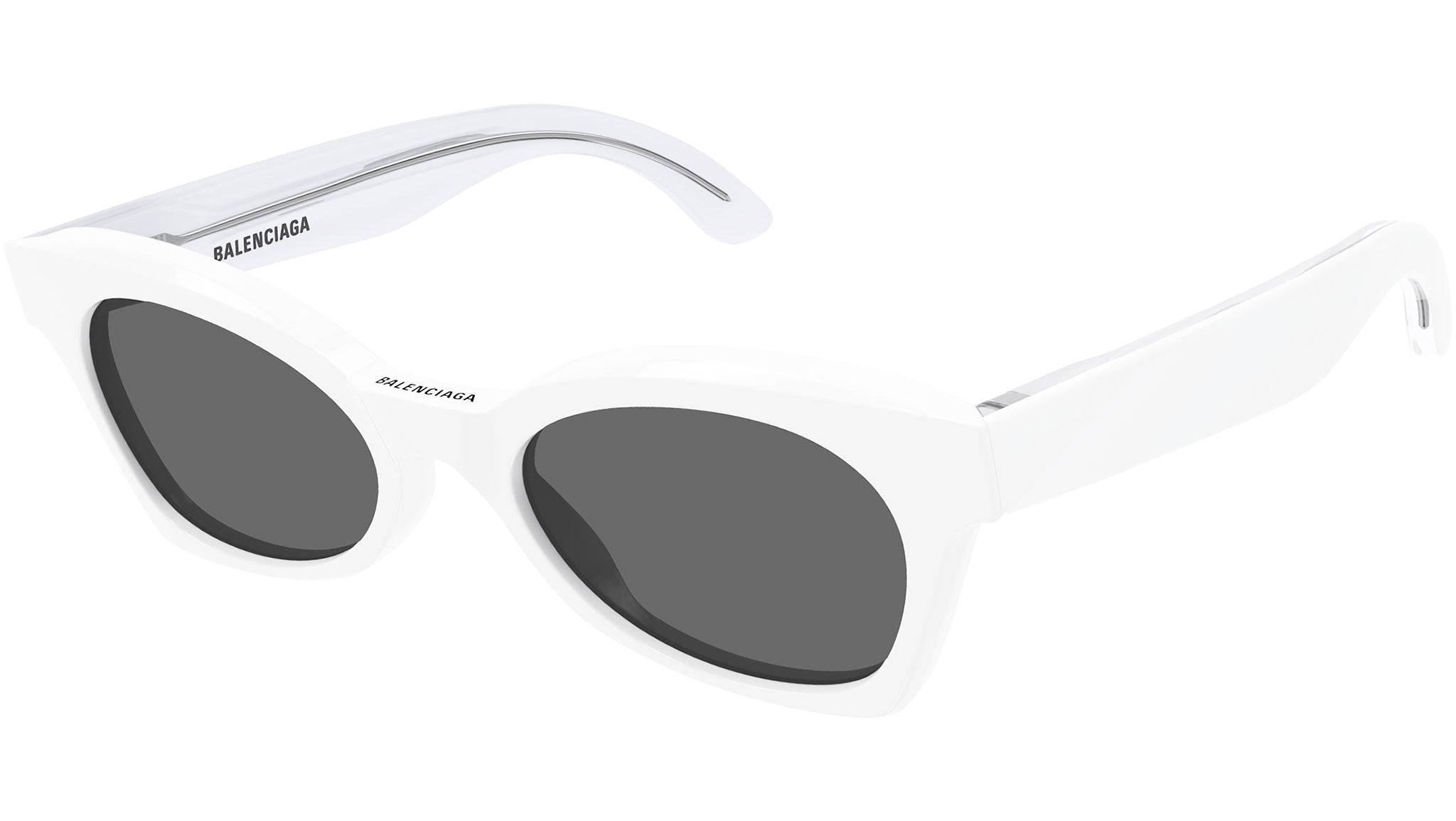 The artistic director of Balenciaga's collections continues to uphold the vision, influence and radical style of the House. Statement sunglasses in terms of coverage and contrast, consisting of bold frames in colors and patterns taken from the buzzing streets of Paris. High-density acetate pushes back technical limits by achieving a new level of thinness.