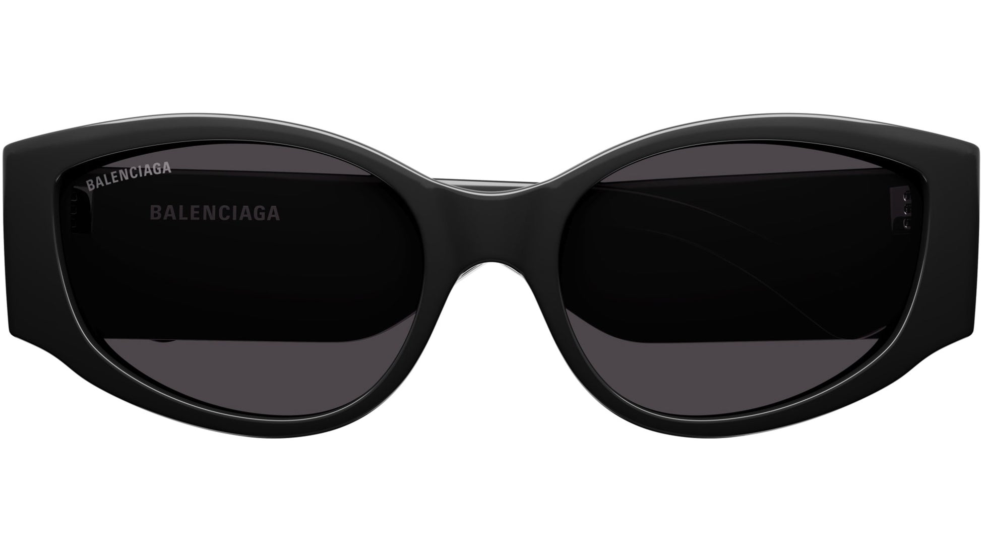 Balenciaga Everyday collection sunglasses model BB0258S 001 featuring shiny solid black frame and solid grey lens.