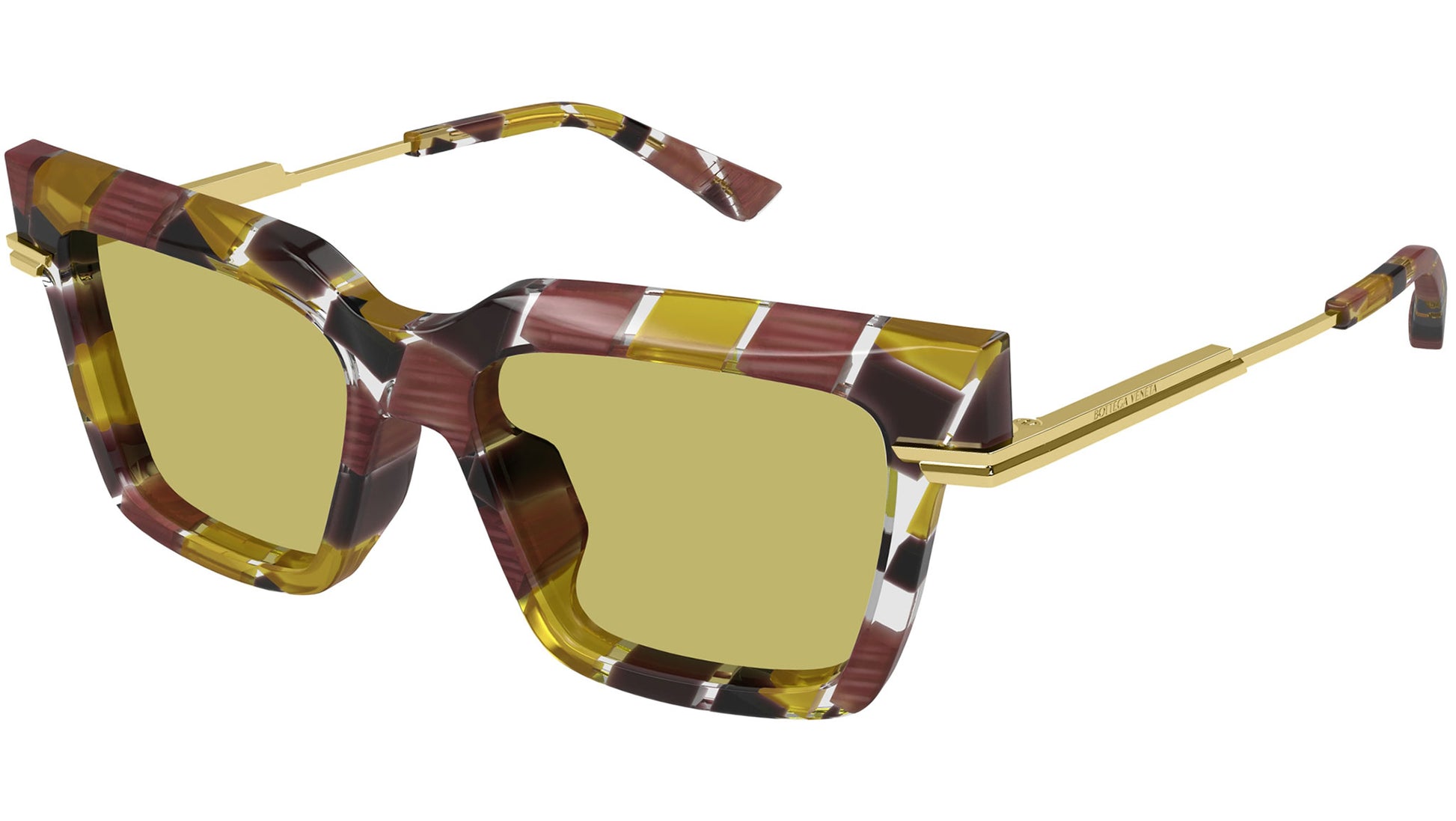 Bottega Veneta BV1242S 005 Burgundy Ocher Rectangular Sunglasses