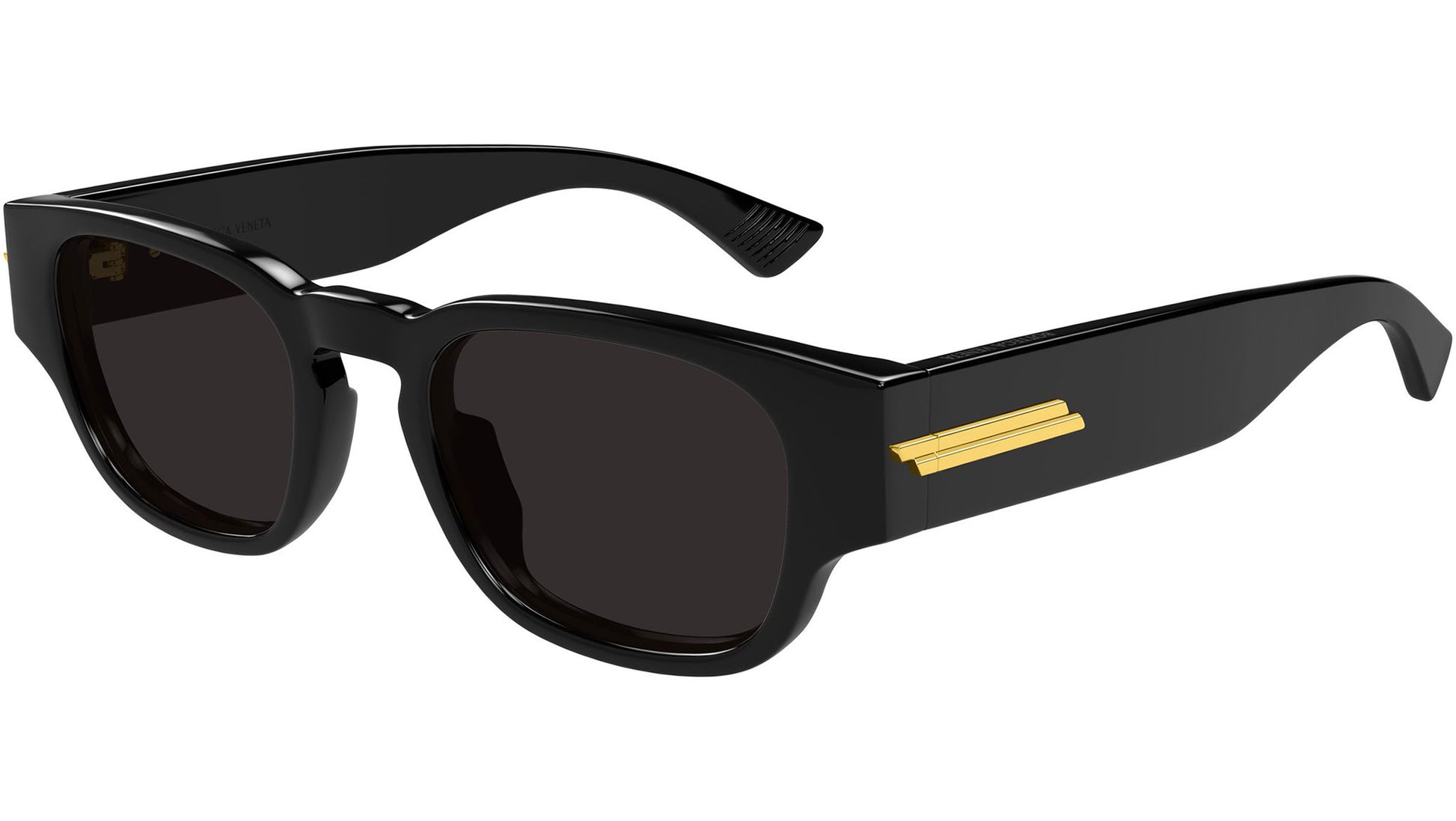 Bottega Veneta BV1460S 001 sunglasses for men, featuring shiny solid black panthos recycled acetate frame and solid grey bio nylon lenses. Brand line: Ribbon. Style code: BV1460S. Color code: 001. Made in Japan. Authorized Bottega Veneta online reseller. Your glasses will include the original case and accessories and are covered by a 12-month global warranty.