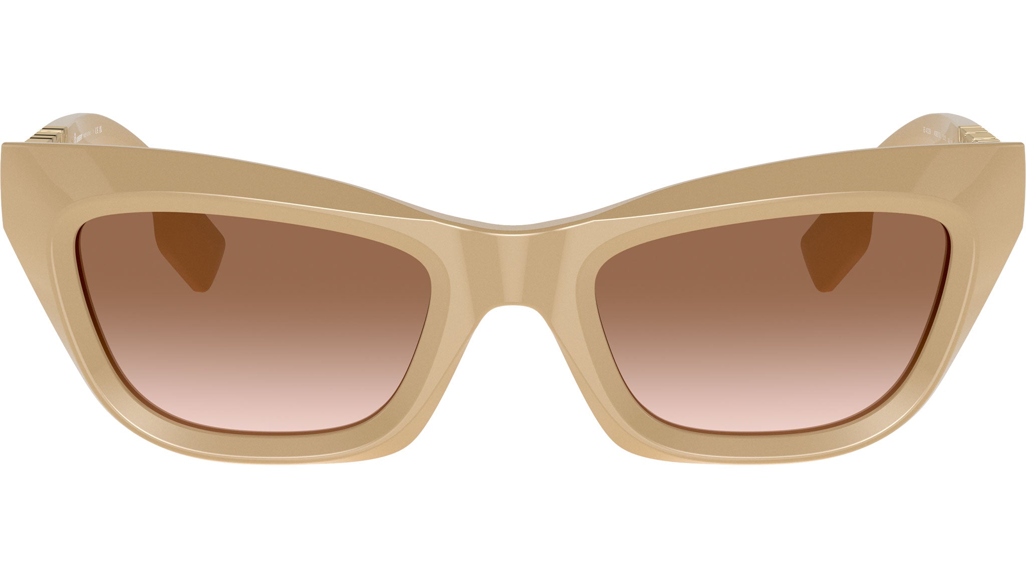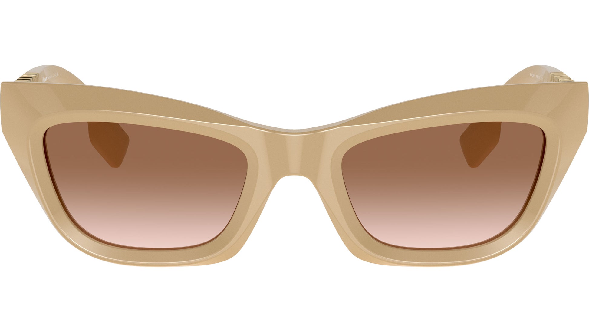 Burberry sunglasses for women model 4409 featuring beige full rim acetate frame and base 4 curve brown gradient lens. high bridge fit. Frame line: B. Logo Woman. Brand code: BE4409. Color code: 409213. Authorised Burberry Online Reseller. Your glasses will come including the original case and accessories and will be covered by 12 month global warranty.