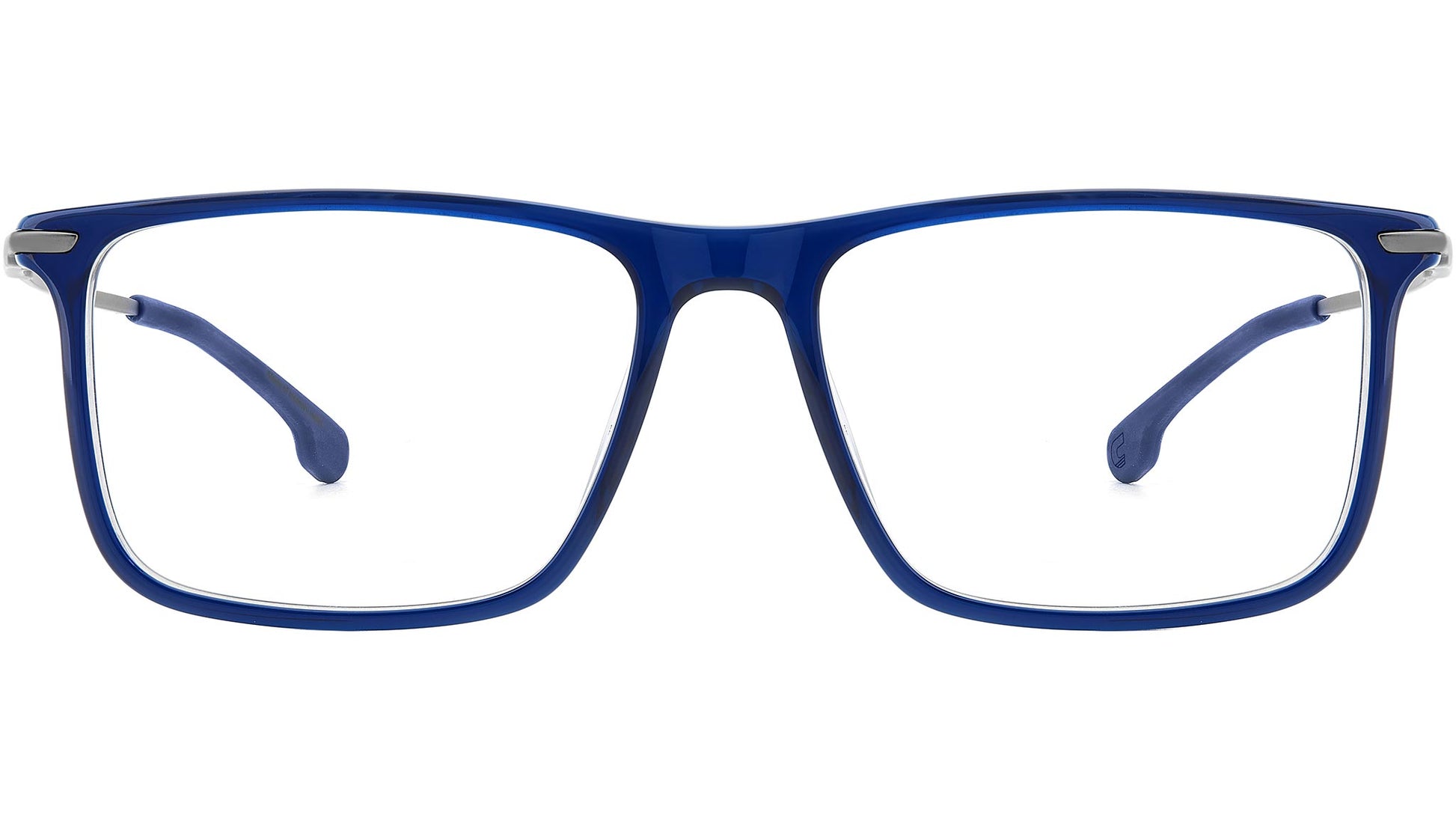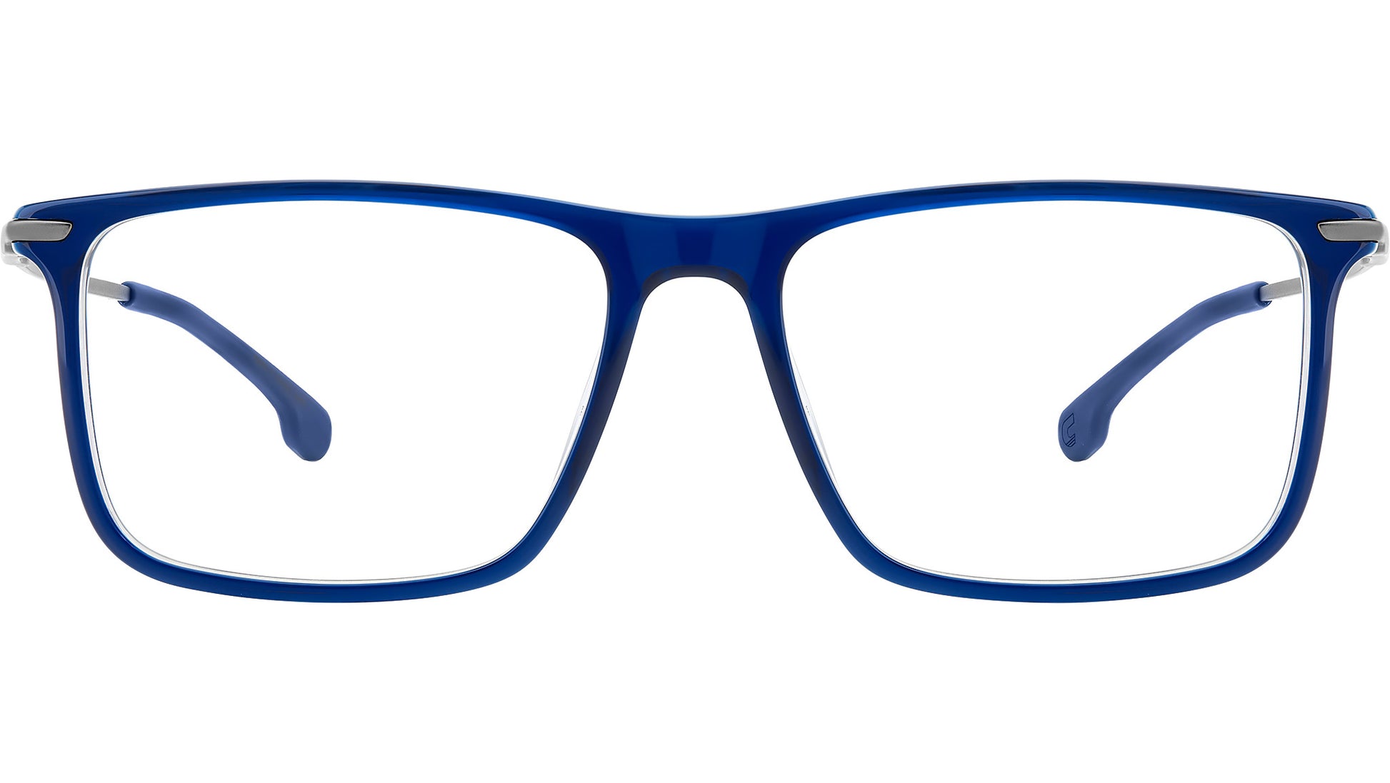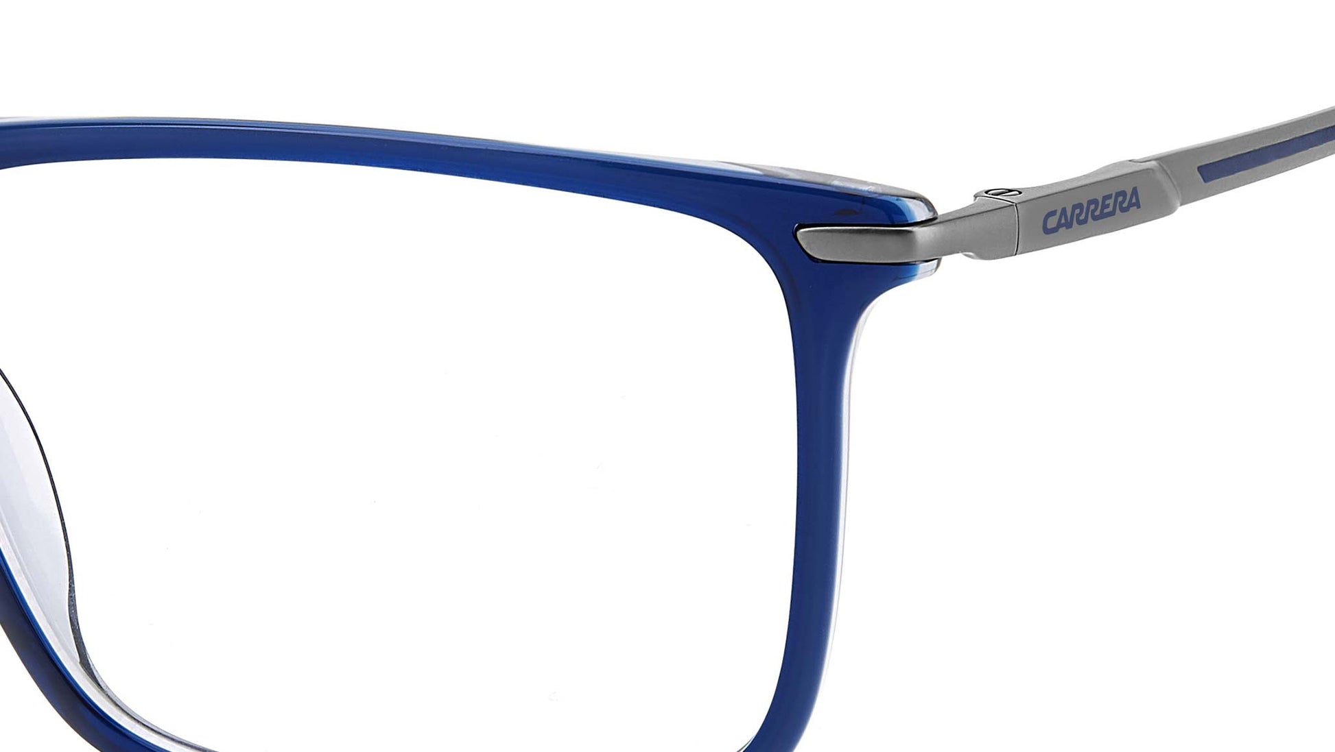 Carrera CARRERA 8905 XW0 glasses for men, featuring blue grey rectangular acetate frame and demo lens lenses. Premium materials and high-quality manufacturing define these Carrera eyeglasses. They're designed for light-as-a-feather comfort, with a slender and compact front in lightweight acetate. Daily use is no problem at all: the Memory Metal temples always return to their original position, even when they're stressed and folded. Everyone can choose their favourite colour palette, each of which is accented by a logo and a tone-on-tone Carrera flag. Brand line: Sport. Style code: 108127. Color code: XW0. Authorized Carrera online reseller. Your glasses will include the original case and accessories and are covered by a 12-month global warranty.