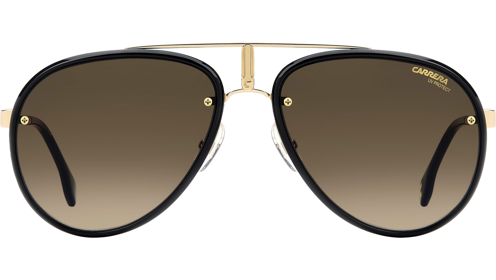 Carrera CARRERA GLORY RHL 86 sunglasses for men and woman, featuring gold black pilot metal frame and black brown green antireflex lenses. Brand line: Flag. Style code: 201034. Color code: RHL 86. Authorized Carrera online reseller. Your glasses will include the original case and accessories and are covered by a 12-month global warranty.