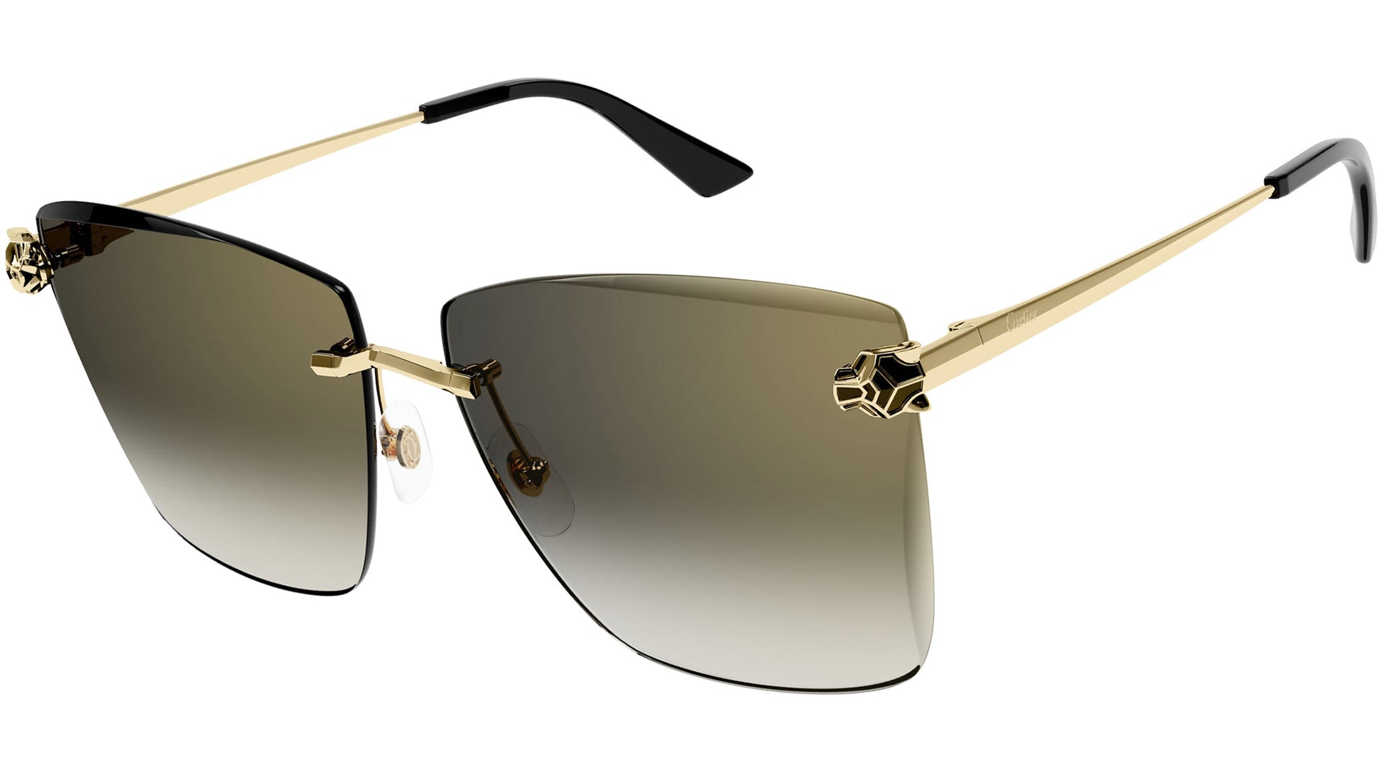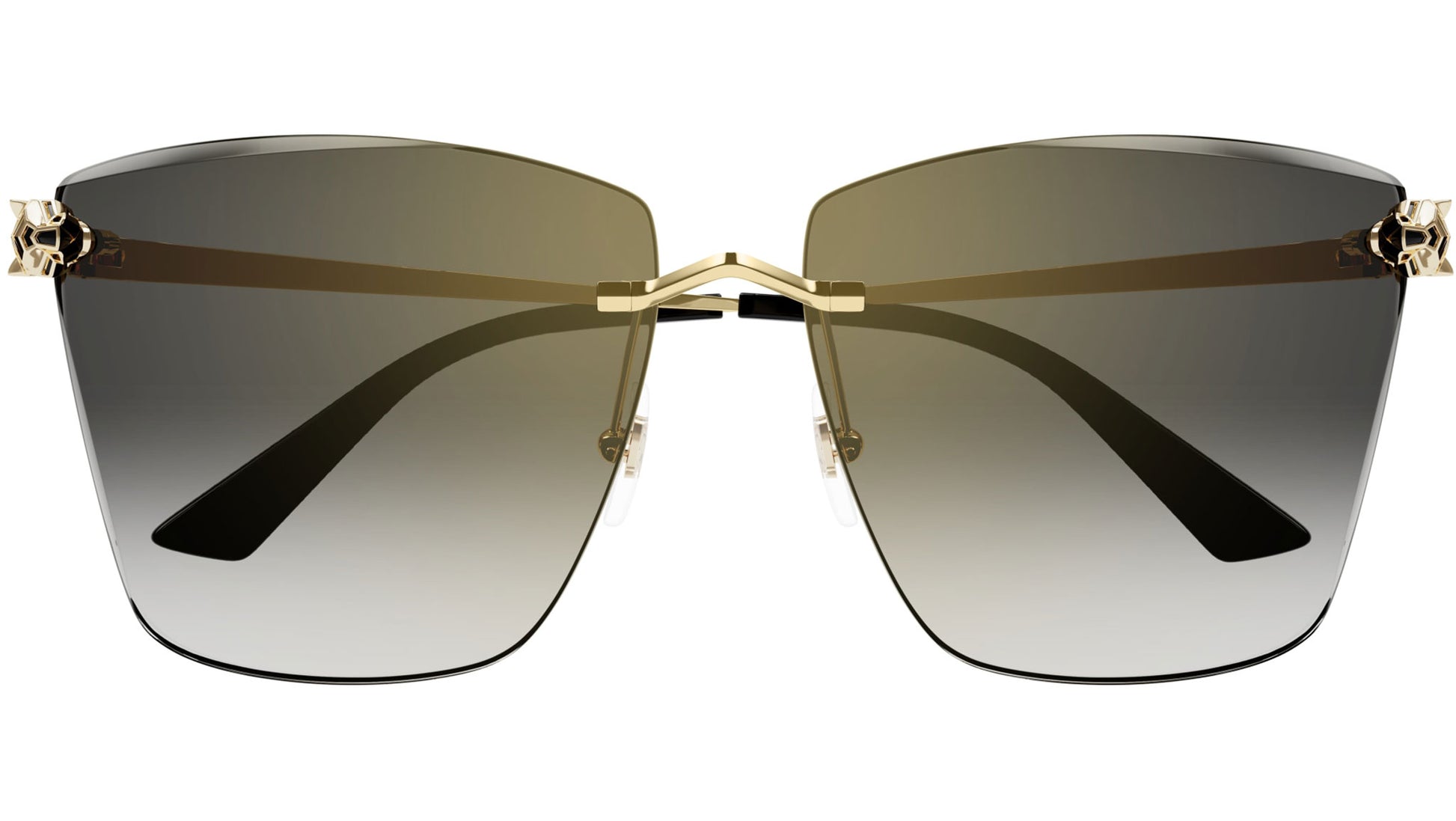 Cartier Core Range sunglasses collection model CT0397S 001 featuring smooth golden finish frame and graded grey with a golden flash lens.