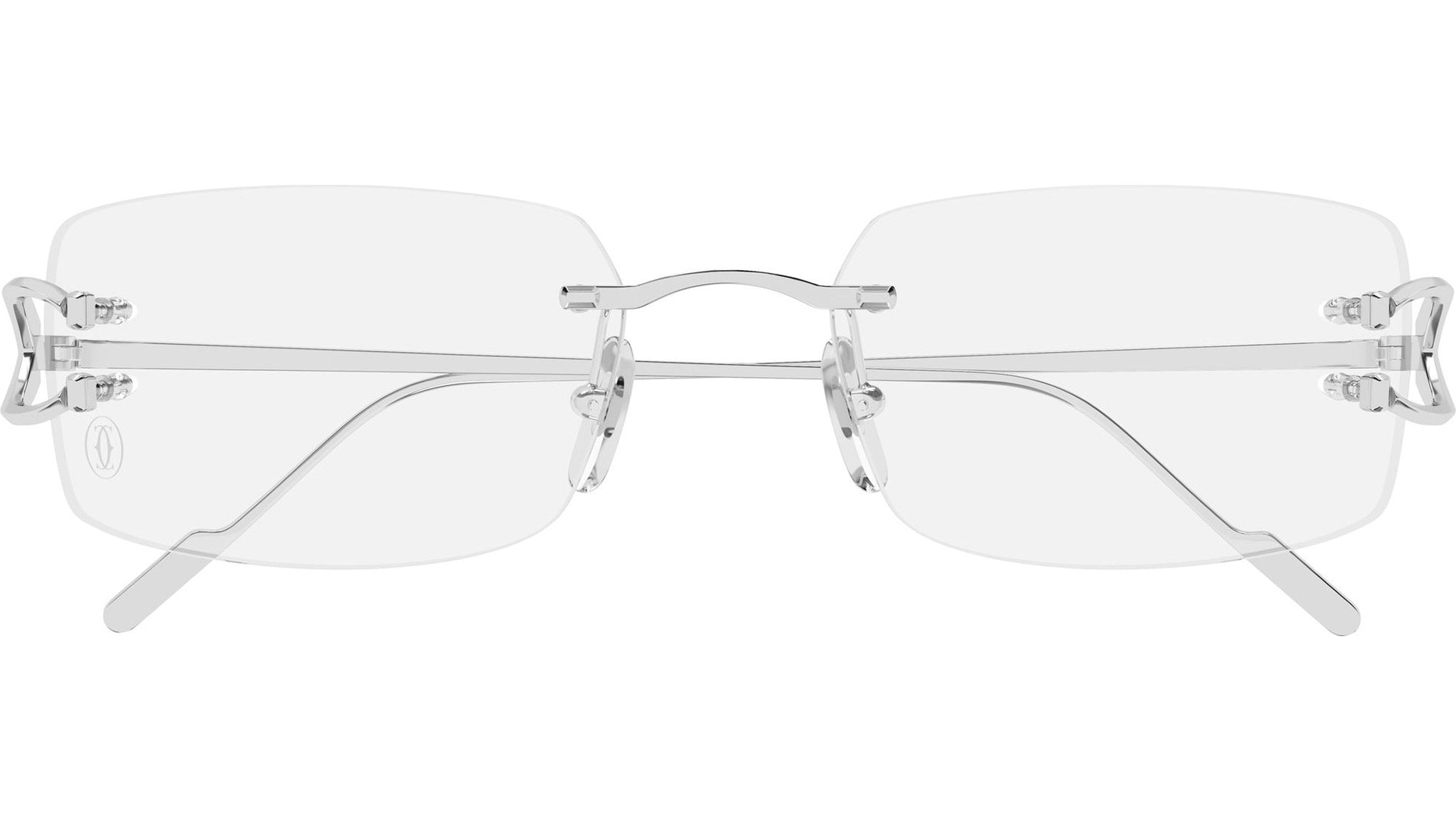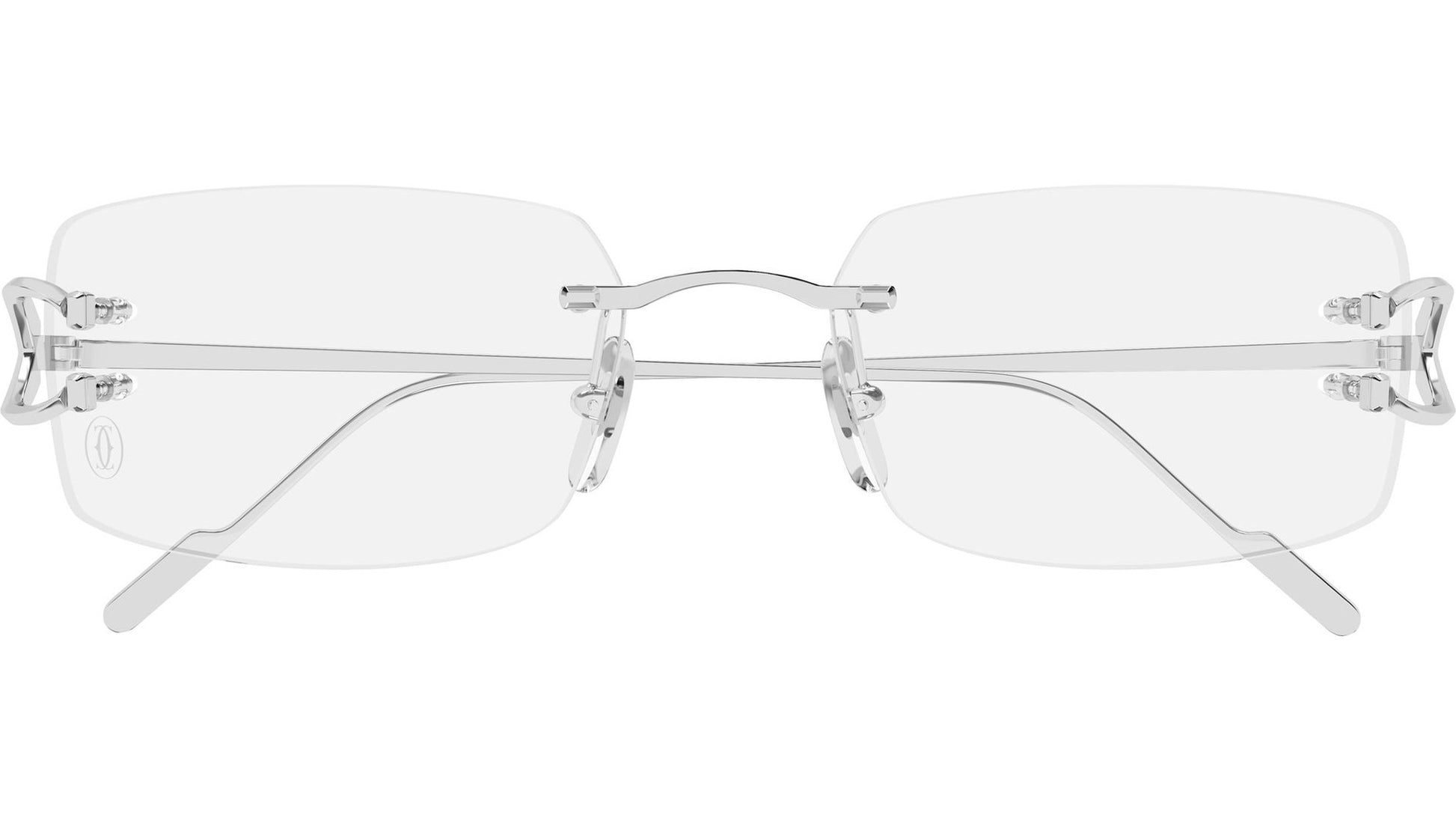 Cartier CT0605O 002 glasses for men, featuring white solid gold rectangular frame and recycled demo lens . Brand line: Precious. Style code: CT0605O. Color code: 002. Made in France. Authorized Cartier online reseller. Your glasses will include the original case and accessories and are covered by a 12-month global warranty.