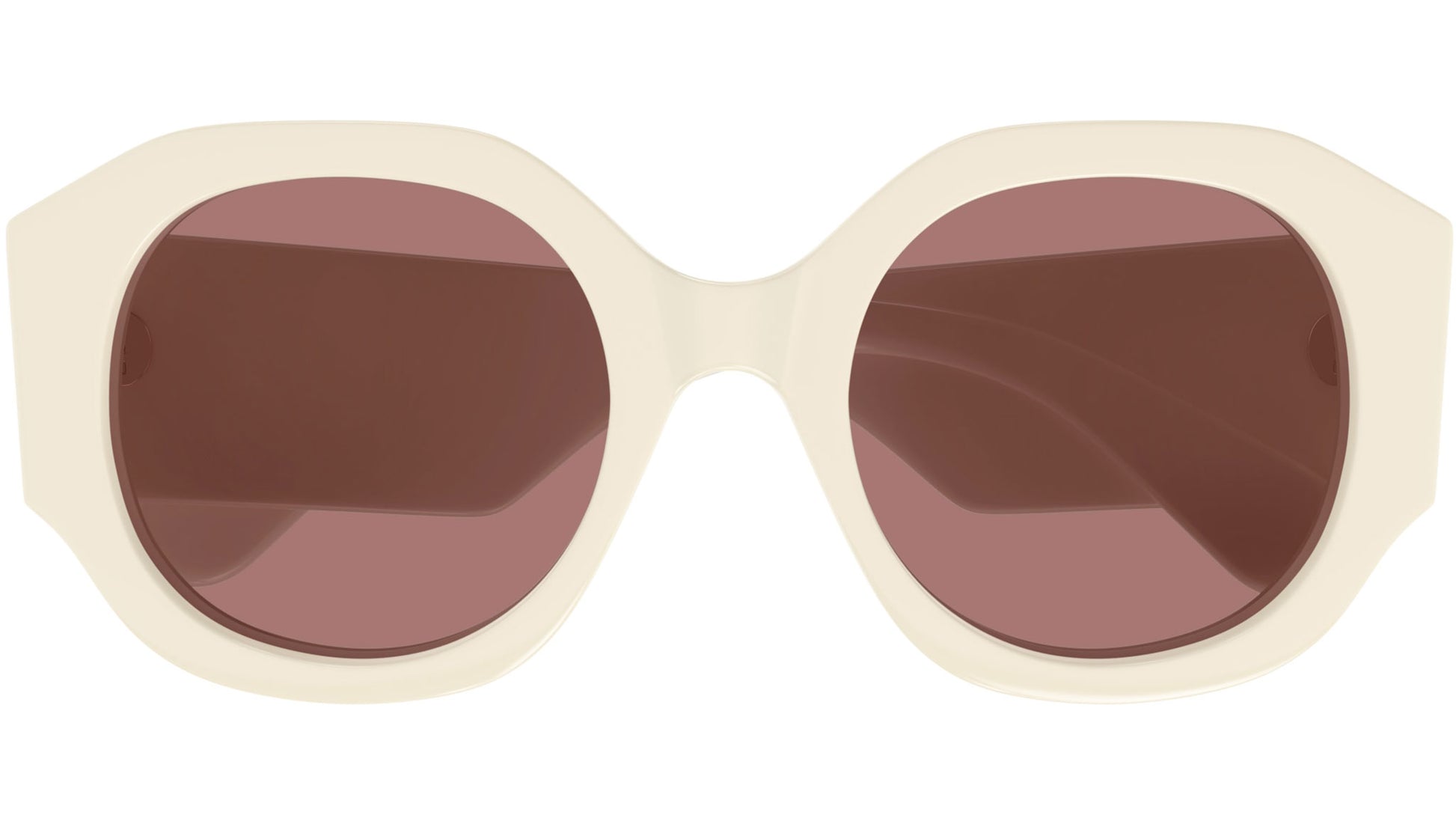 Chloé CH0234S 003 sunglasses for women, featuring shiny solid ivory panthos recycled acetate frame and solid bordeaux bio nylon lenses. Brand line: Chloé. Style code: CH0234S. Color code: 003. Made in Italy. Authorized Chloé online reseller. Your glasses will include the original case and accessories and are covered by a 12-month global warranty.
