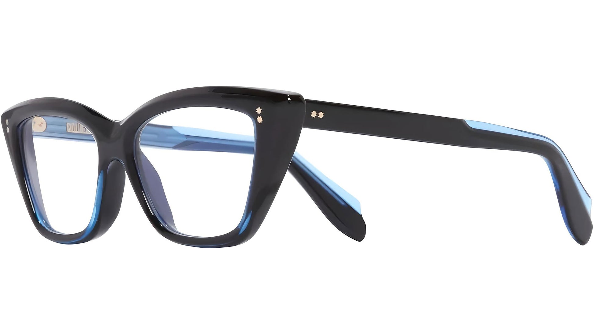 Cutler and Gross CGOP 9241 cat eye full rim acetate optical frame in blue on black. Cutler and Gross eyewear epitomizes the pinnacle of luxury, blending British elegance with the finest Italian craftsmanship. Each piece, a testament to bespoke quality, showcases meticulous attention to detail and a timeless aesthetic, making them the ultimate symbol of sophistication and style.
