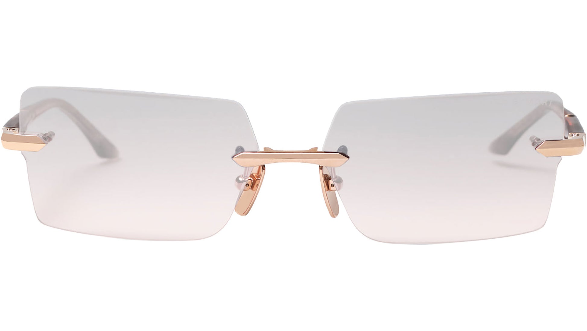 Dita Eymori Optical 02 glasses for men and woman, featuring rose gold / el mirage swirl rectangular acetate-titanium frame and demo lenses. The EYEMORI rimless optical frame exemplifies a blend of understated luxury and exceptional craftsmanship. Its seamless construction features a custom titanium bridge piece and screw-mounted lenses, ensuring a refined aesthetic. This model is further distinguished by an intricate titanium chamfered hinge block and dual sculpted titanium acetate temples, which contribute to its overall elegance. Key specifications include custom titanium nose pads with diamond-pressed detail, 100% UVA and UVB lenses with an anti-reflective coating, and a prestigious “Made in Japan” designation. Brand line: Dita. Style code: DTX462. Color code: 02. Authorized Dita online reseller. Your glasses will include the original case and accessories and are covered by a 12-month global warranty.