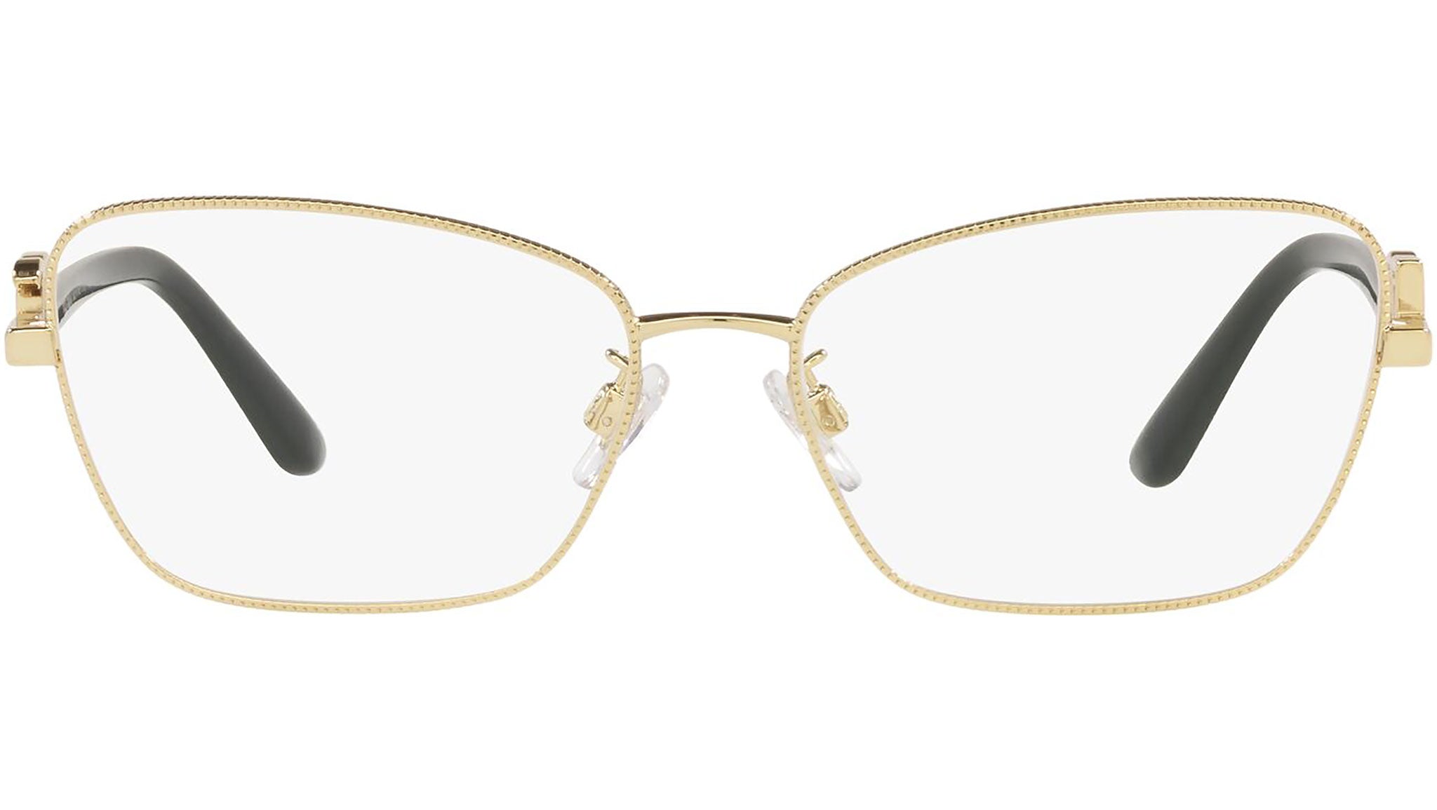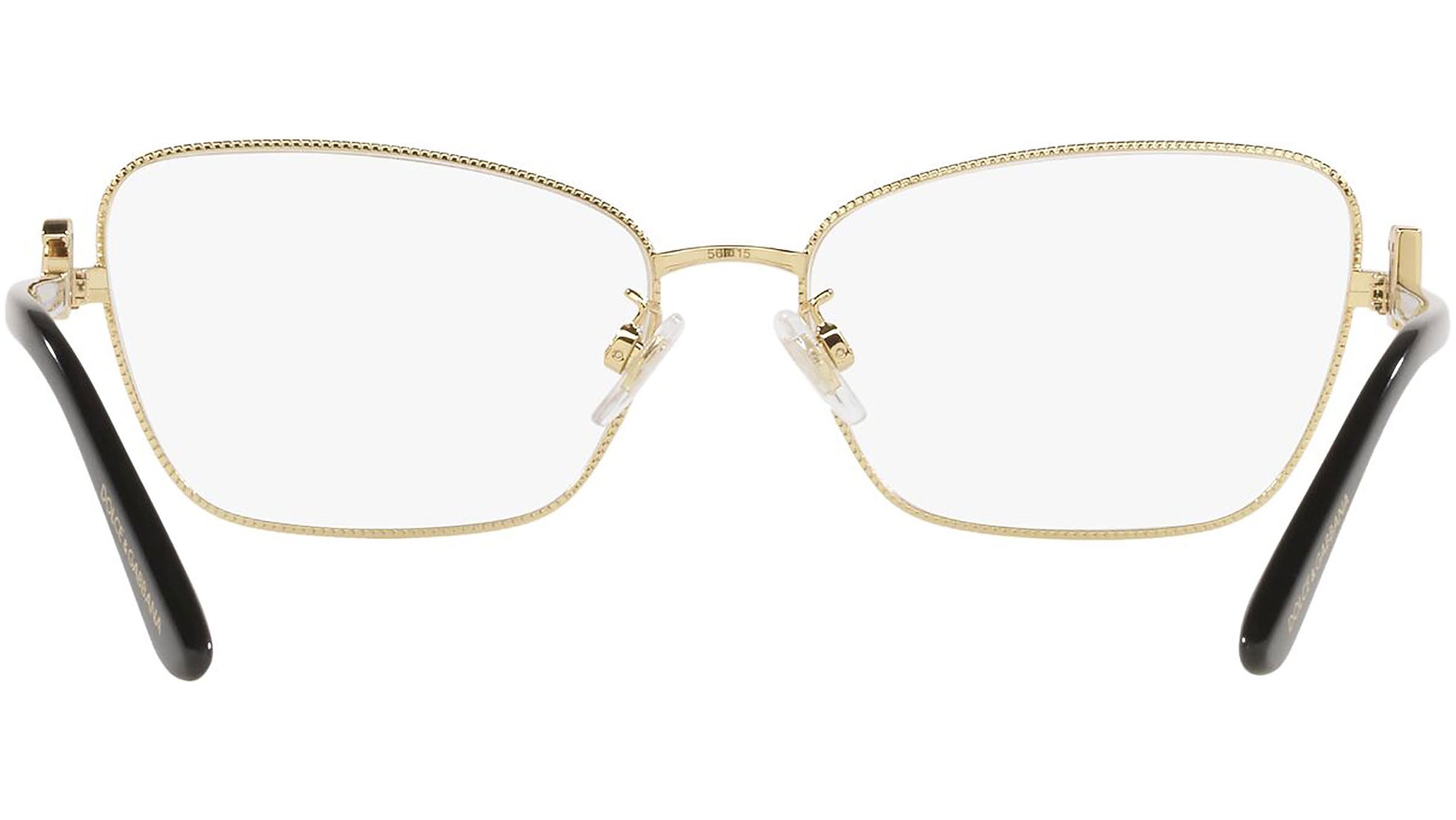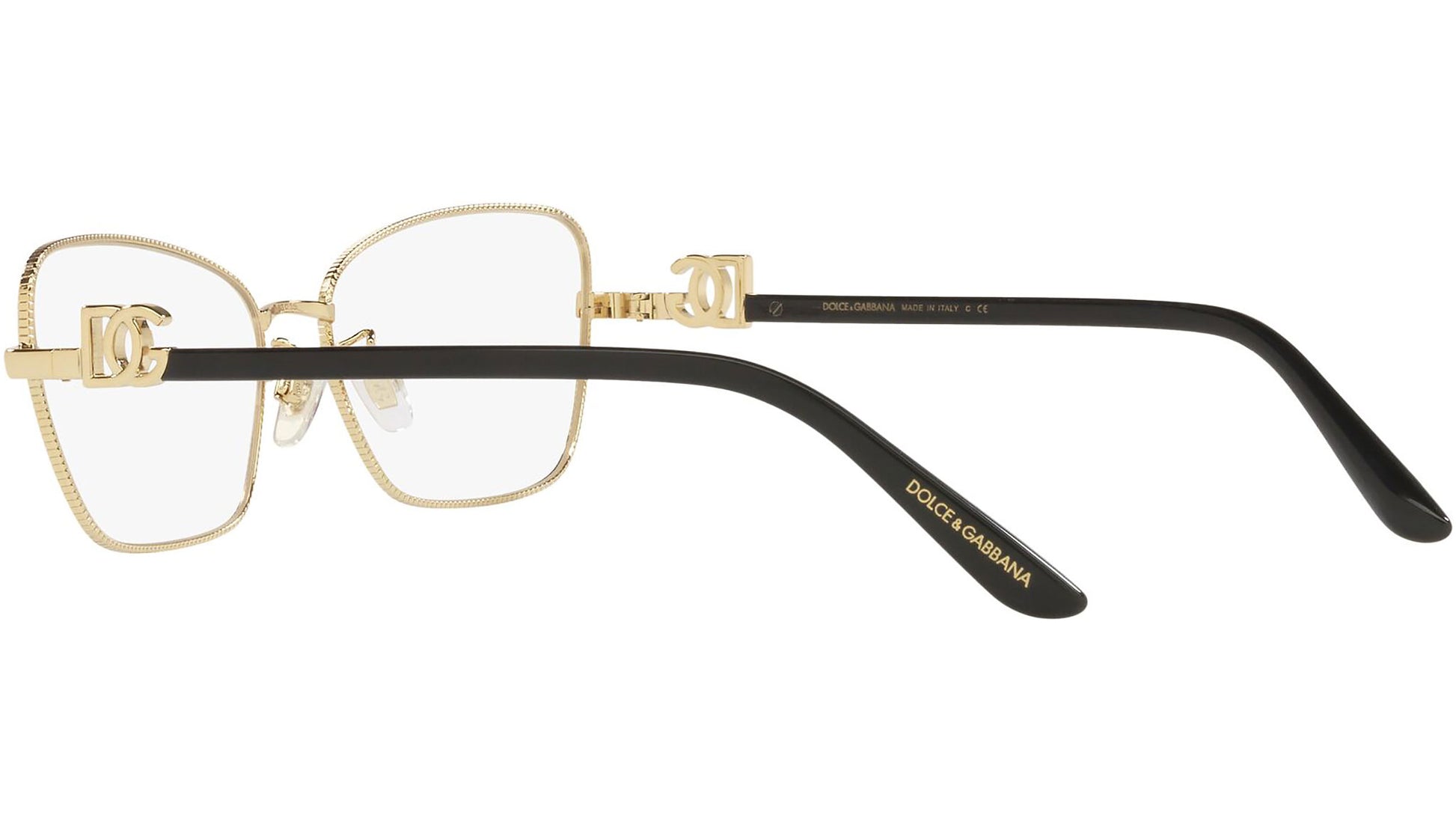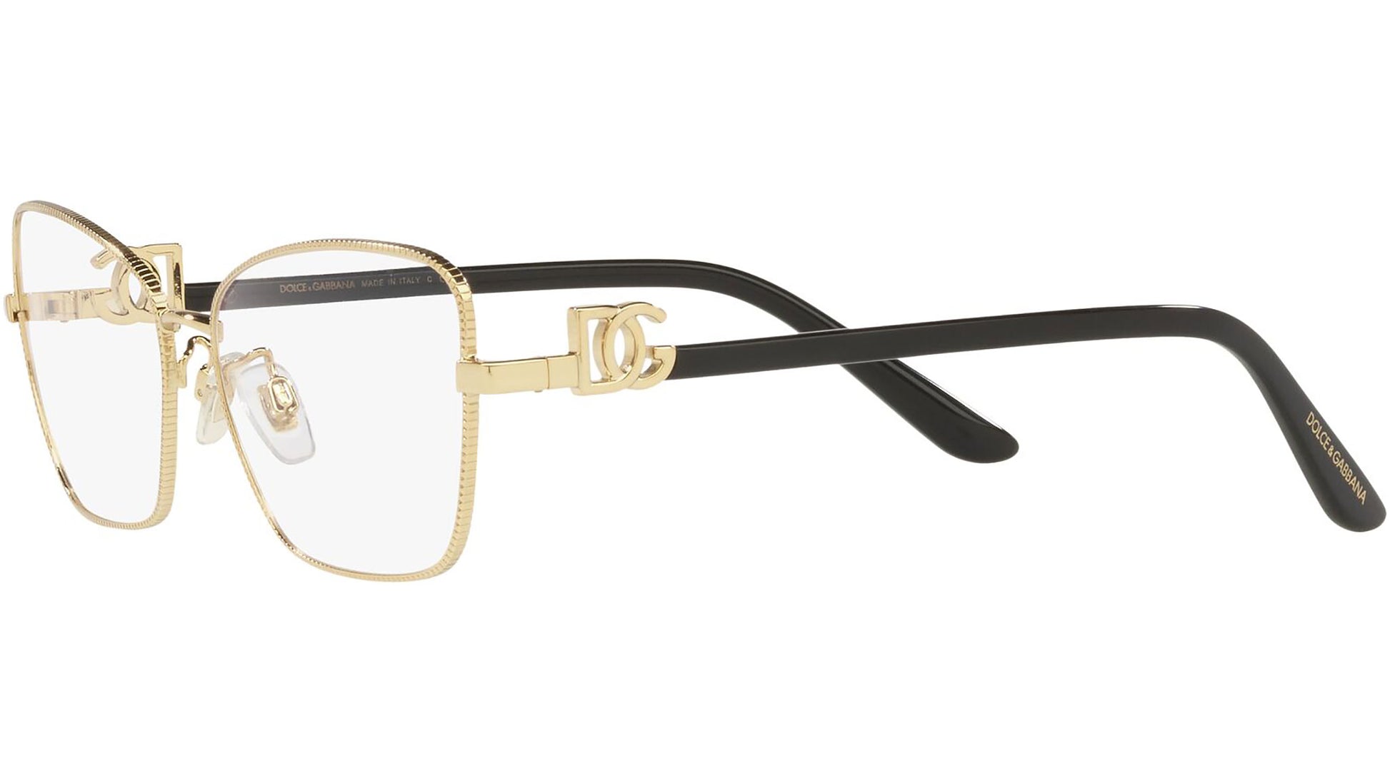Dolce&Gabbana optical model DG 1338 02 gold. The eyewear models harmoniously blend the spirit of innovation and sartorial tradition, embracing technology and ’90s creative inspirations. A Collection that enhances the Brand’s cultural references and explores its timeless codes, reinterpreting them with a contemporary twist.
