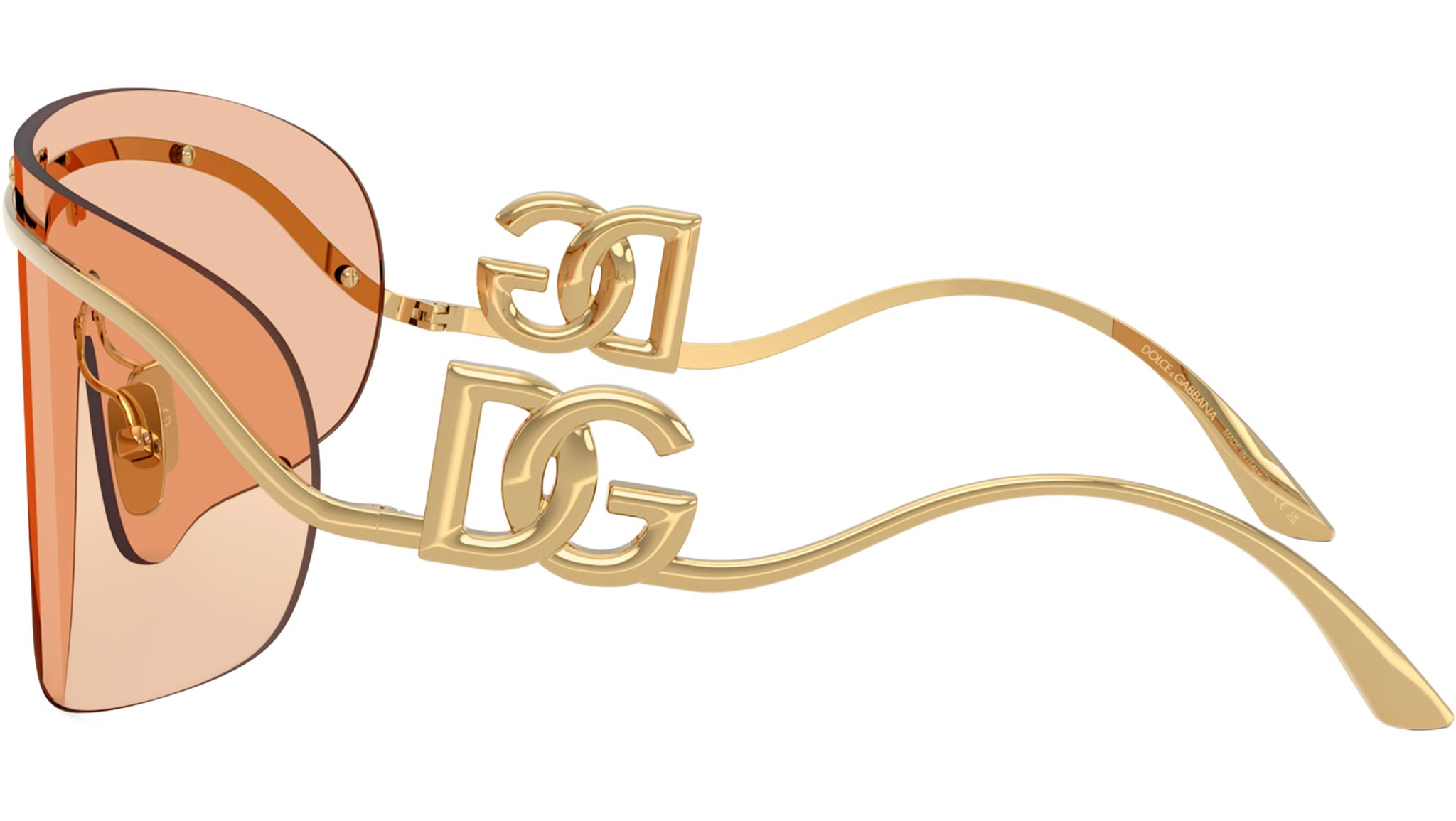 Dolce & Gabbana DG 2320 02/73 sunglasses for women, featuring gold d-frame metal frame and light brown nylon lenses. Adjustable nosepads. Brand line: Statement. Style code: 0DG2320. Color code: 02/73. Made in Italy. Authorized Dolce & Gabbana online reseller. Your glasses will include the original case and accessories and are covered by a 12-month global warranty.