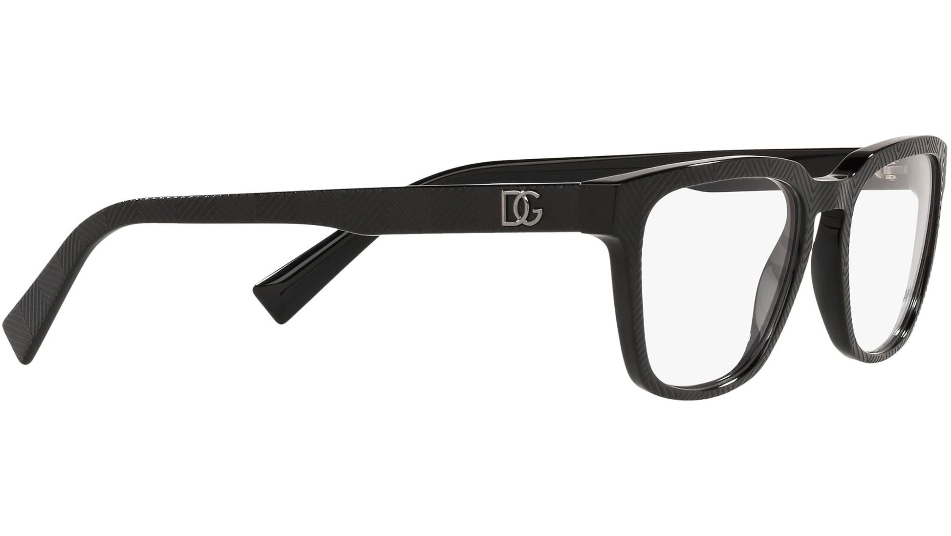 Dolce&Gabbana optical model DG 3333 3298 black. The eyewear models harmoniously blend the spirit of innovation and sartorial tradition, embracing technology and ’90s creative inspirations. A Collection that enhances the Brand’s cultural references and explores its timeless codes, reinterpreting them with a contemporary twist.