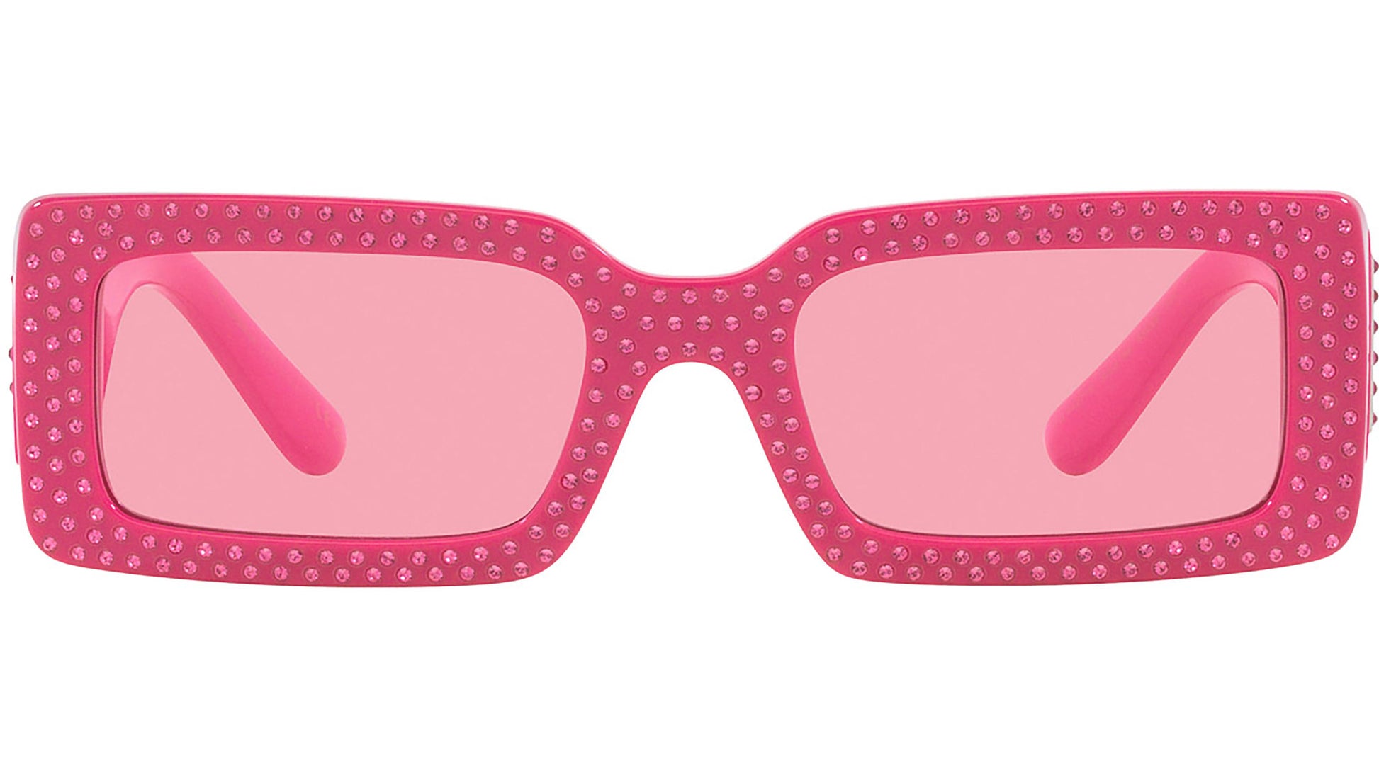 Dolce&Gabbana rectangle sungasses model DG 4447B from Statement eyewear line, color code 326284 fuchsia acetate frame with pink lens.