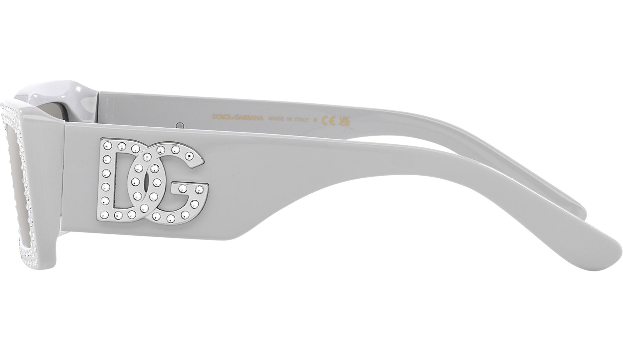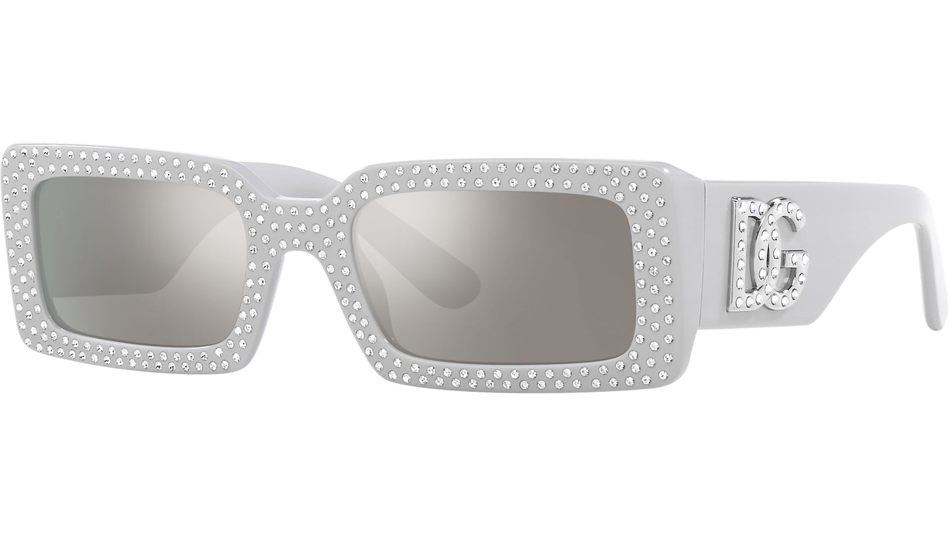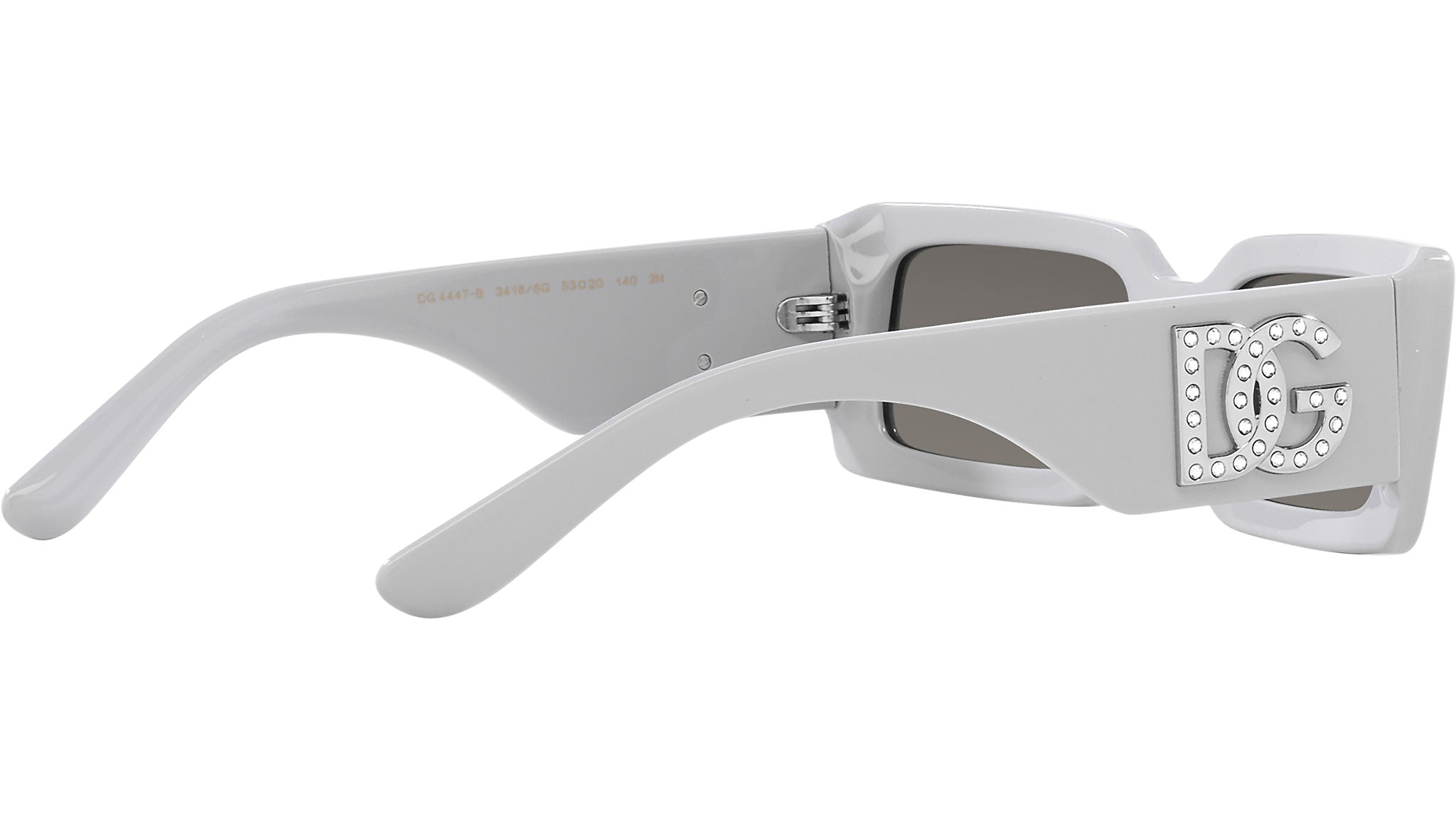 Dolce&Gabbana rectangle sungasses model DG 4447B from Statement eyewear line, color code 34186G light grey acetate frame with light grey mirror silver lens.