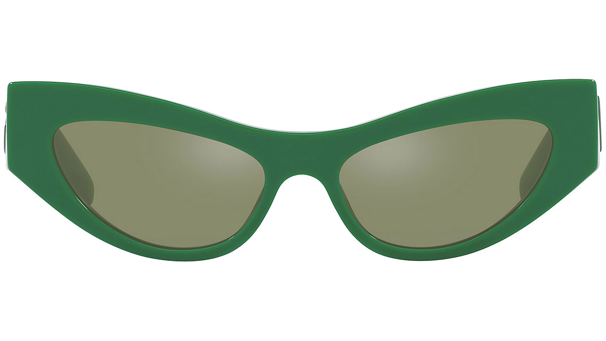 Dolce&Gabbana cat eye sungasses model DG 4450 from Dna eyewear line, color code 331152 green acetate frame with green mirror silver lens.