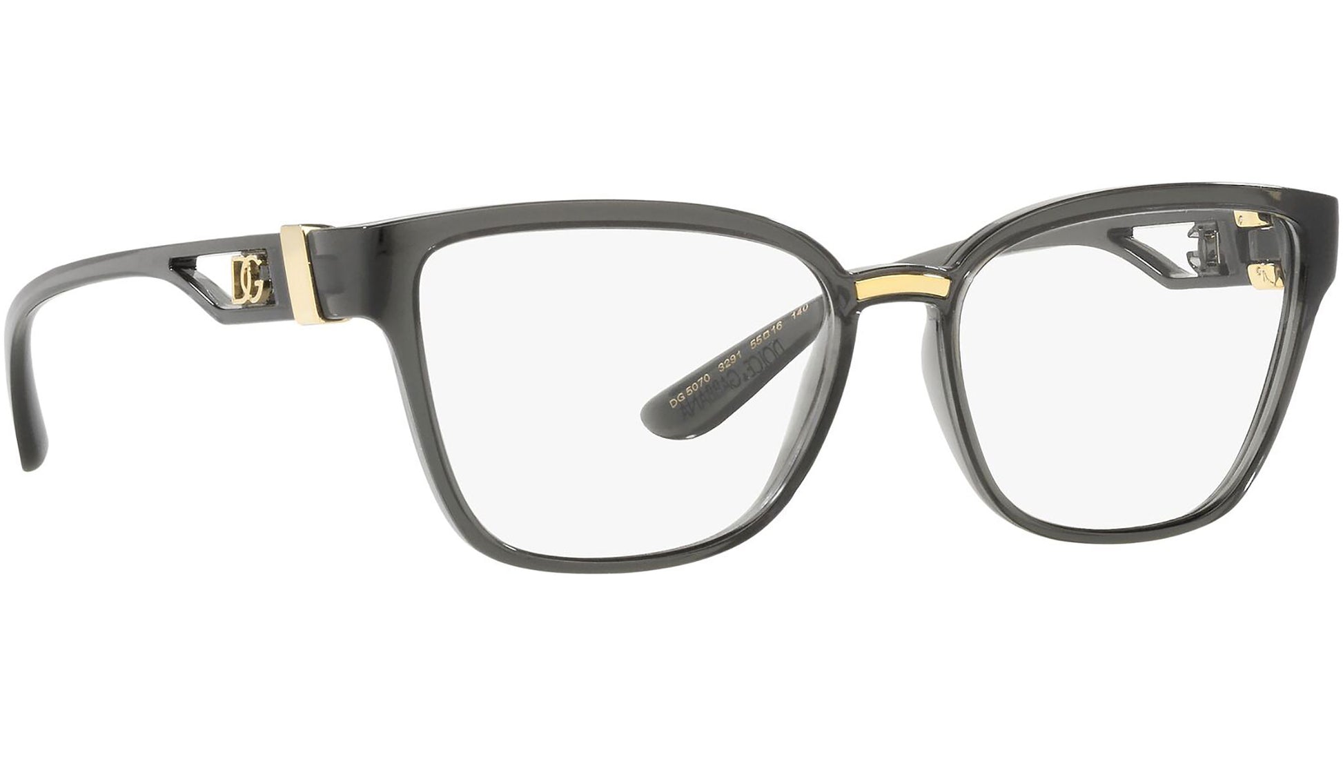 Dolce&Gabbana optical model DG 5070 3291 grey. The eyewear models harmoniously blend the spirit of innovation and sartorial tradition, embracing technology and ’90s creative inspirations. A Collection that enhances the Brand’s cultural references and explores its timeless codes, reinterpreting them with a contemporary twist.