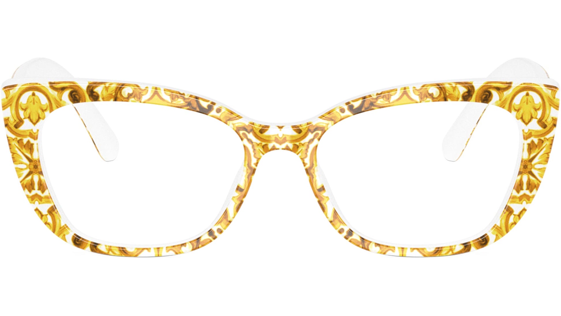Dolce & Gabbana Kids DX 3357 3434 glasses, featuring yellow majolica cat eye acetate frame and lente demo. High bridge fit. Brand line: Dna. Style code: 0DX3357. Color code: 3434. Made in Italy. Authorized Dolce & Gabbana Kids online reseller. Your glasses will include the original case and accessories and are covered by a 12-month global warranty.