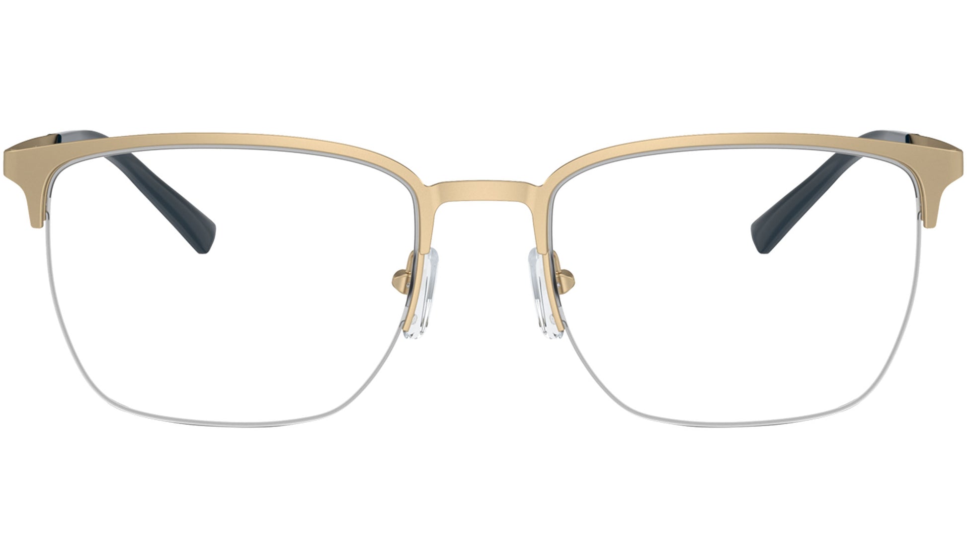 Emporio Armani eyeglasses for men model EA1151 featuring matte pale gold semi rim metal frame and base 4 curve demo lens. Adjustable Nosepads. Frame line: Runway. Brand code: EA1151. Color code: 3002. Authorised Emporio Armani Online Reseller. Your glasses will come including the original case and accessories and will be covered by 12 month global warranty.